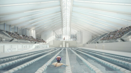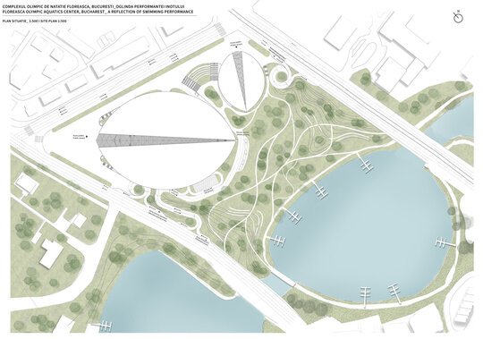 Proiectul propus pentru Centrul de Natație din nordul Bucureștiului se înscrie într-o viziune contemporană asupra infrastructurii sportive, abordând-o ca pe un spațiu public dinamic, cu valențe sociale și urbane.