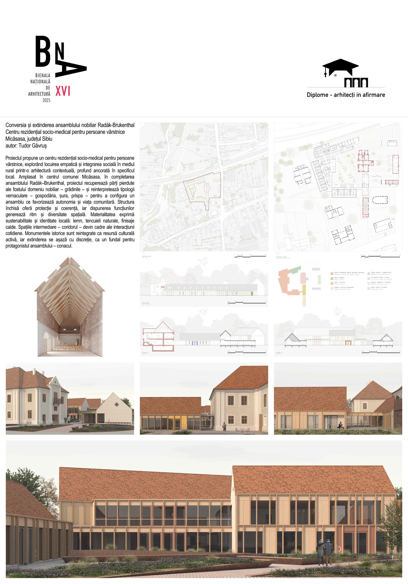 Arhitectura propusă oferă un cadru empatic, flexibil și profund uman pentru locuire și îngrijire, devenind un suport real pentru demnitatea și autonomia vârstnicilor. Ansamblul contribuie activ la revitalizarea vieții comunitare locale, întărind legăturile sociale și cultivând spiritul de apartenență. Totodată, memoria locului este reactivată prin restaurarea patrimoniului construit, care devine o resursă vie, integrată firesc în cotidianul contemporan și valorificată în slujba comunității.