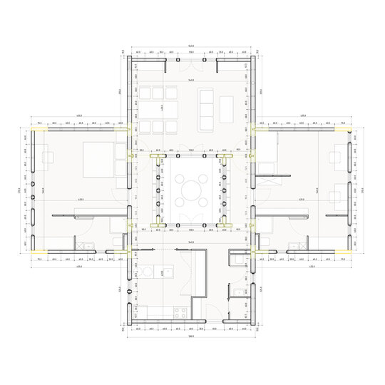 Odată ce primul modul este finalizat, locuința poate fi extinsă prin asamblarea modulelor secundare (dormitoarele), a căror ordine poate fi la latitudinea beneficiarului.