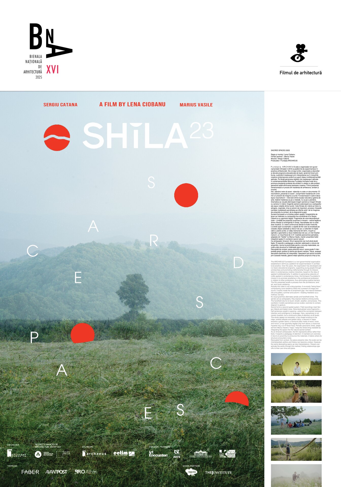 Fundația ARCHAEUS este o organizație non-guvernamentală înființată în 2010 ca platformă de experimentare în practica arhitecturală. De-a lungul anilor, organizația a dezvoltat și derulat programe educaționale de bază, sprijinind tinerii prin burse, susținând meșteșugul prin interpretarea sa în industriile creative contemporane având ca suport ideea multidisciplinarității aplicate. Pe lângă generarea rețelelor de meșteșuguri aplicate în contemporaneitate Misiunea Fundației Archaeus este de a promova excelența profesiei de arhitect în relație cu alte profesii, generând astfel eliminarea barierelor creative. Filmul prezentat rememorează un proces din rezidența de arhitectura, landart și muzică.