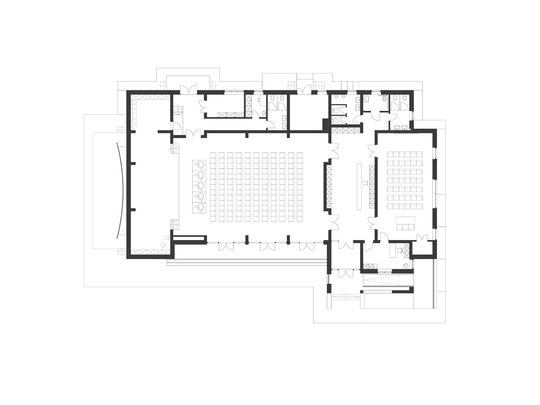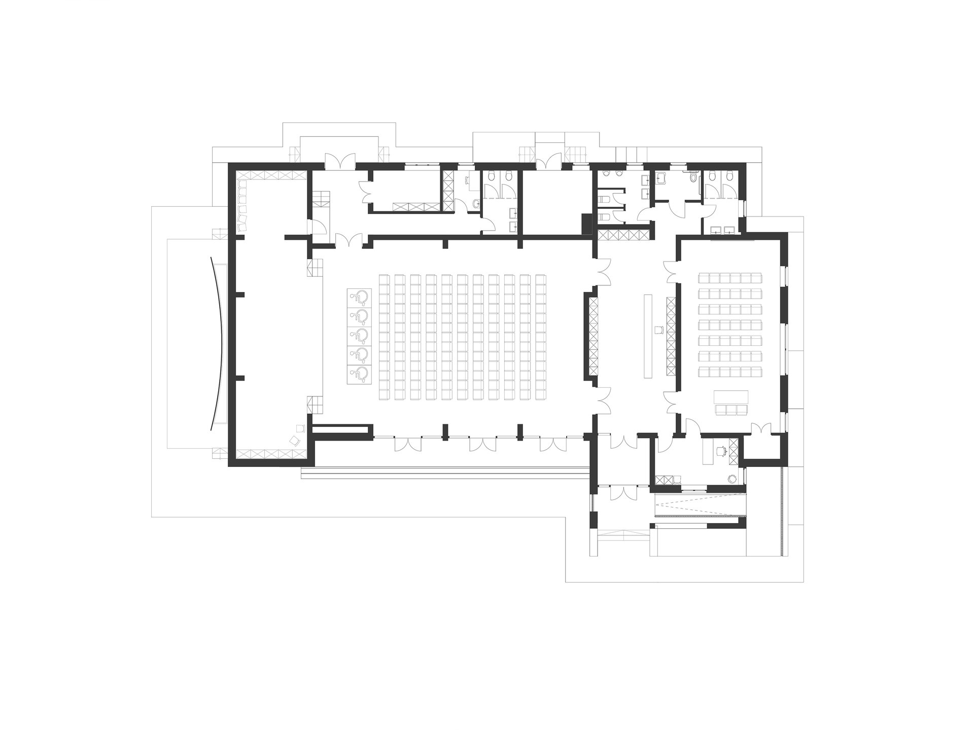 Clădirea constituie epicentrul activităților culturale din localitate și cuprinde un cumul de funcțiuni caracteristice tipologiei enunțate: sală mare de evenimente, scenă cu acces separat, sală de conferințe, foaier cu zonă de garderobă, spații administrative și anexe. Datorită poziționării sălilor de o parte și de alta a foaierului, acestea pot fi utilizate concomitent, această flexibilitate multiplicând practic scenariile de utilizare. Spațiile tehnice, grupurile sanitare și depozitările sunt amplasate de-a lungul fațadei posterioare, păstrând în acest mod o separație clară între fluxuri.