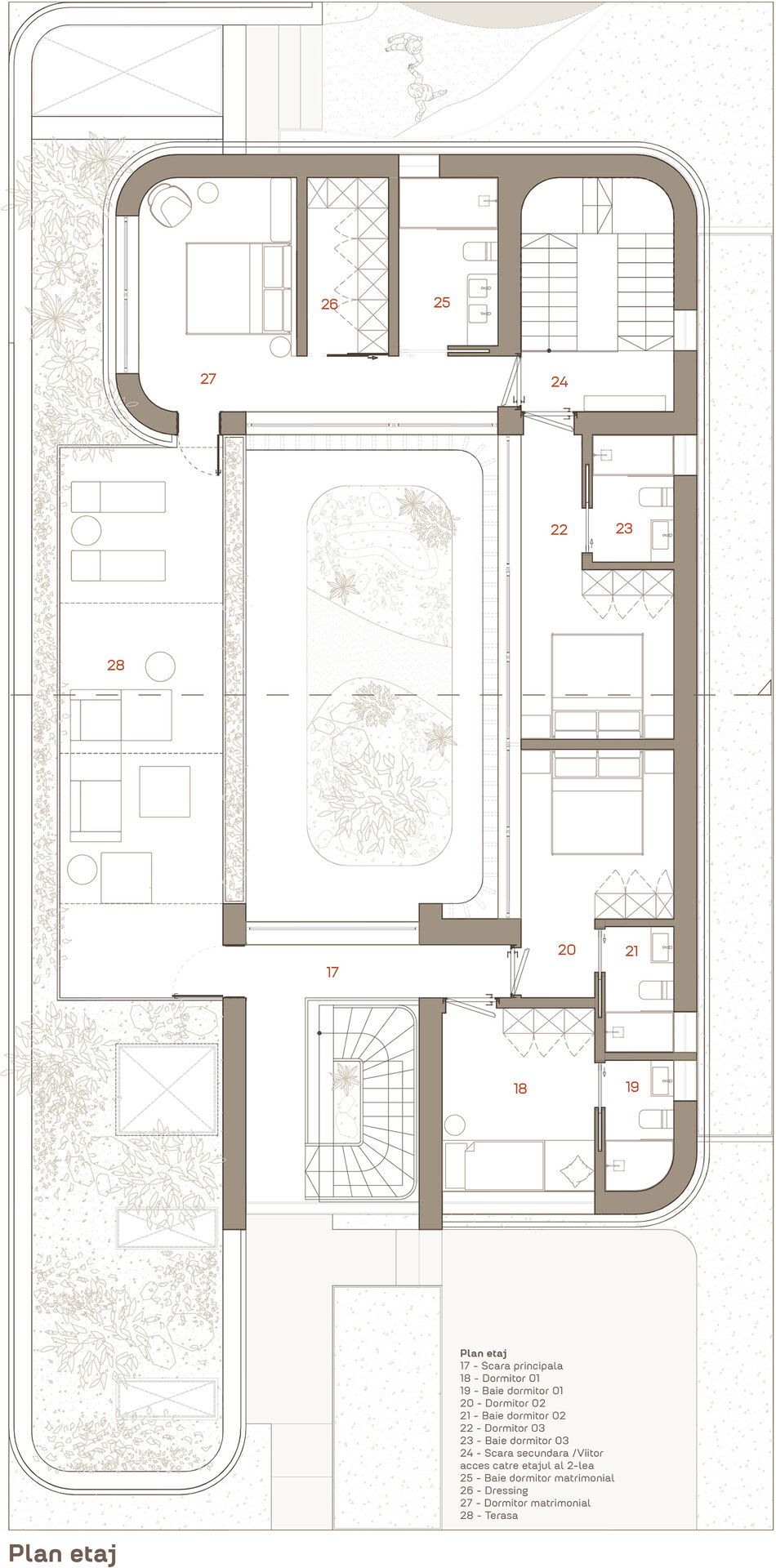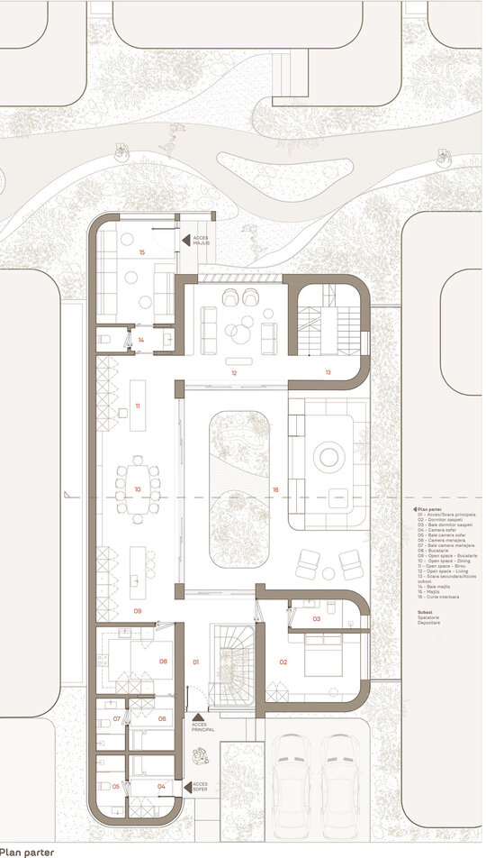 • Coridoare verzi și spații intermediare semi-private pentru interacțiune socială.