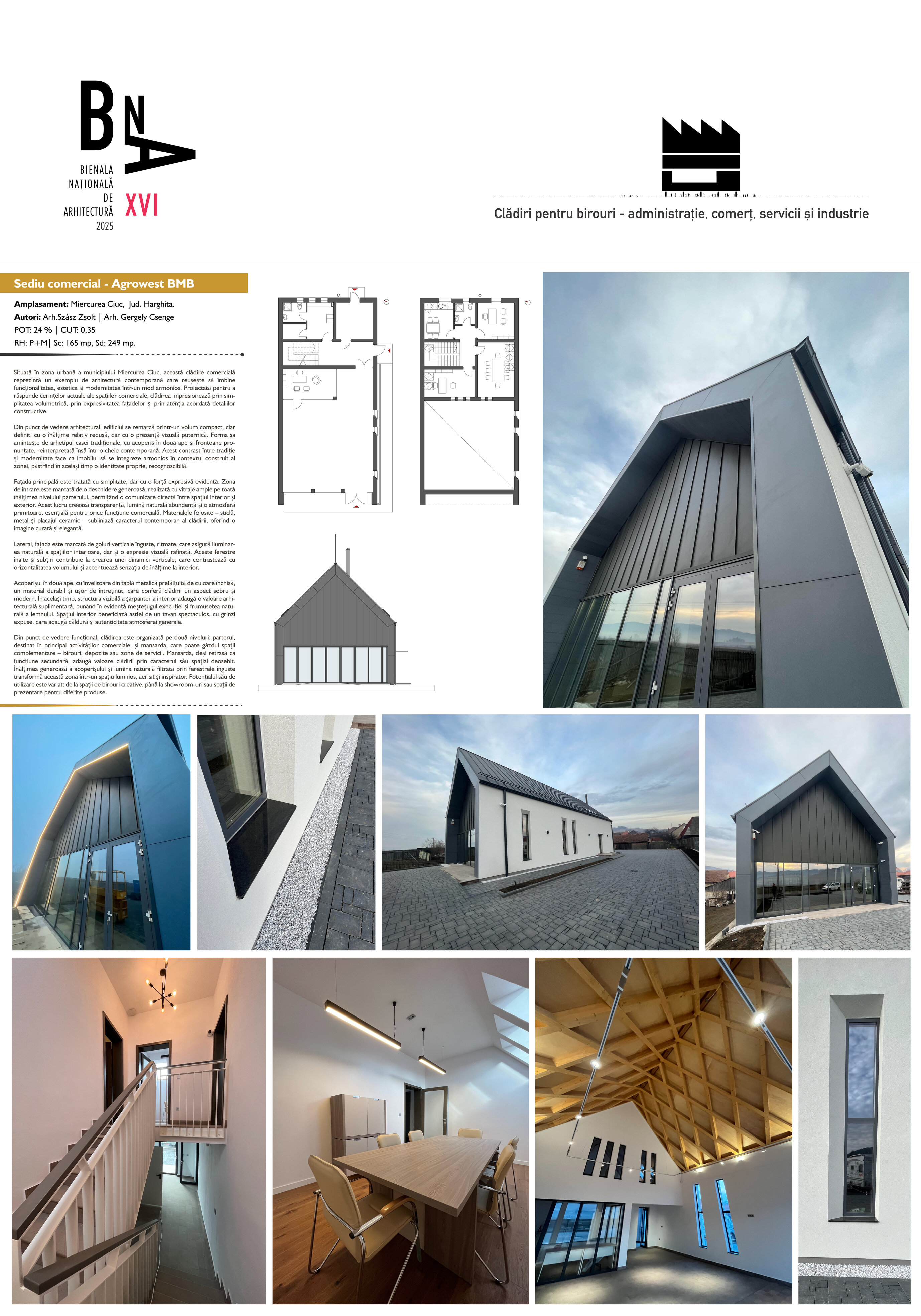 Situată în zona urbană a municipiului Miercurea Ciuc, această clădire comercială reprezintă un exemplu de arhitectură contemporană care reușește să îmbine funcționalitatea, estetica și modernitatea într-un mod armonios. Proiectată pentru a răspunde cerințelor actuale ale spațiilor comerciale, clădirea impresionează prin simplitatea volumetrică, prin expresivitatea fațadelor și prin atenția acordată detaliilor constructive.