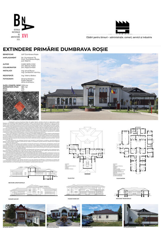 Amplasată în comuna Dumbrava Roșie din județul Neamt, primăria comunei, ce deservește și satele Brășăuți, Cut, Dumbrava Roșie (reședința) și Izvoare, a suferit o serie de schimbări în decursul a 70 de ani, fiind existinsă în mai multe etape. Prin proiectul implementat s-a realizat extinderea clădirii existente dar și adăugarea unor corpuri-anexa necesare funcționării serviciilor auxiliare ale primariei (șopron pentru utilaje, garaje, etc). Pentru realizarea investiției a fost necesară asanarea terenului de construcțiile insalubre, inclusiv a unei părti din primaria existentă.