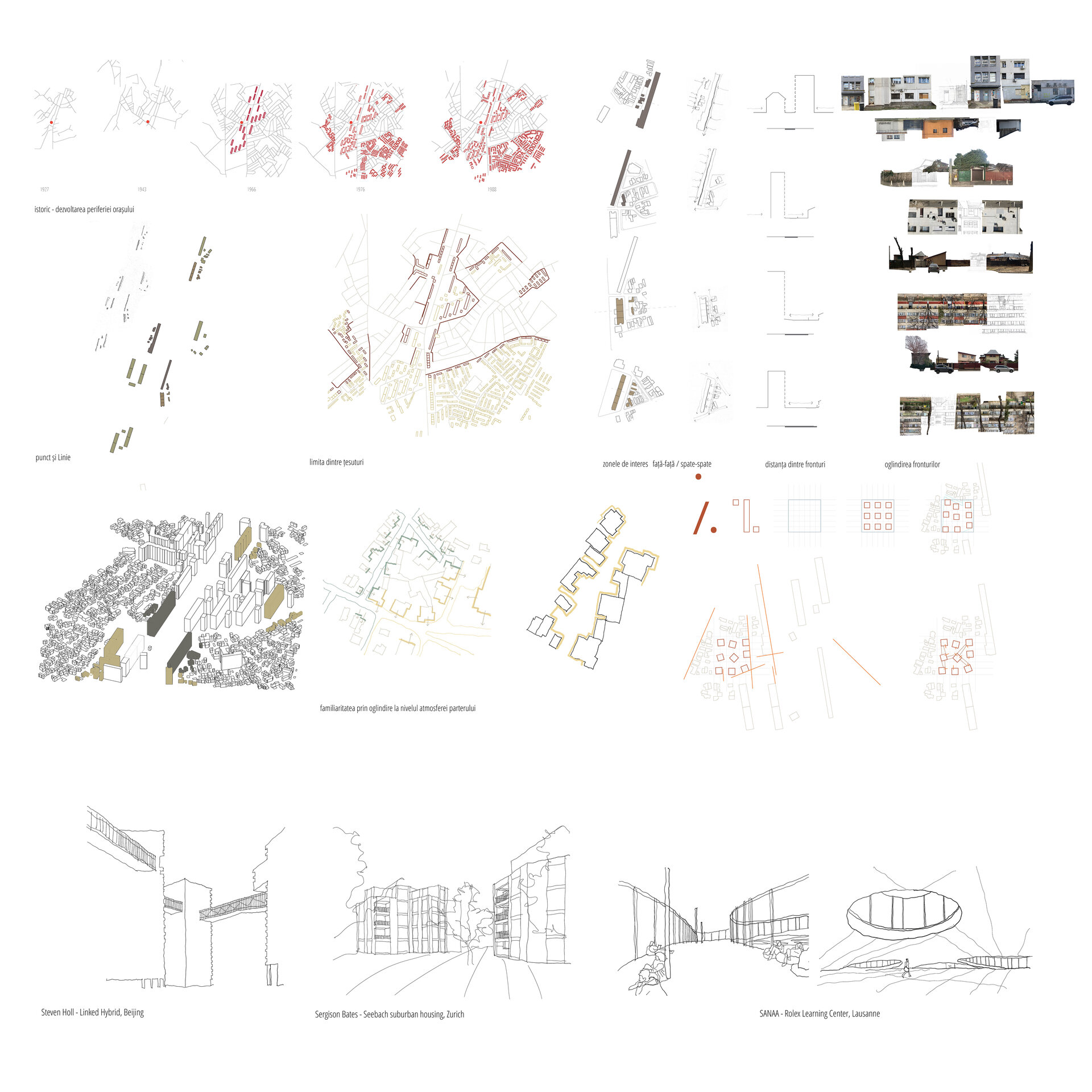 Intrând în această cercetare, unde comparăm limita dintre țesuturi prin diferite criterii care aparțin în special de atmosfera parterului (lățimea străzii, relația de vecinătate, cum se privesc și cum au poziționate ferestrele), observăm o discrepanță între două tipuri de relații (Față-Față/Spate-Spate), adică această oglindire a fațadelor poate fi prielnică sau nu. Dacă relația dintre cele două funcționează, observăm o familiaritate pe care ne bazăm întregul proiect, după criteriile pe care le-am menționat mai sus. Acest instinct de familiaritate ne este confirmat și de analiza hărților istorice, unde se observă cum în zonele familiare, blocurile se așează și vin ca o completare a țesutului vechi, spre deosebire de zonele Spate/Spate, unde o parte din parcela veche este distrusă pentru apariția blocurilor (cum este și cazul blocului turn de lângă teren).