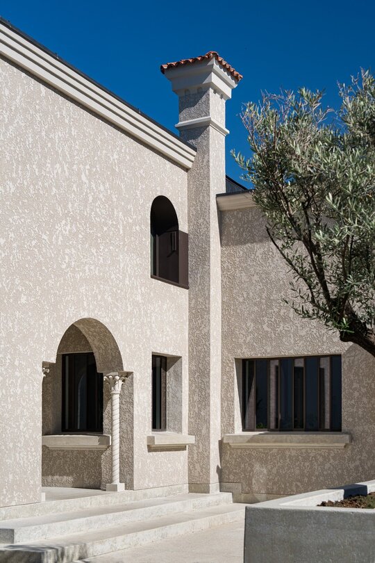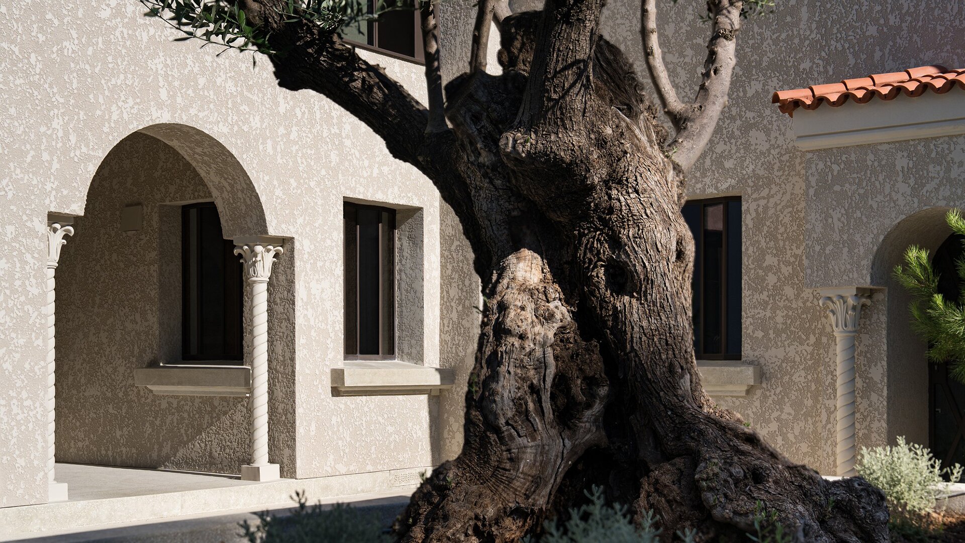 Grădina exterioară continuă limbajul casei prin plante specifice mediteraneene iar curtea imbratiseaza cerul printr-o oglindă de apă.