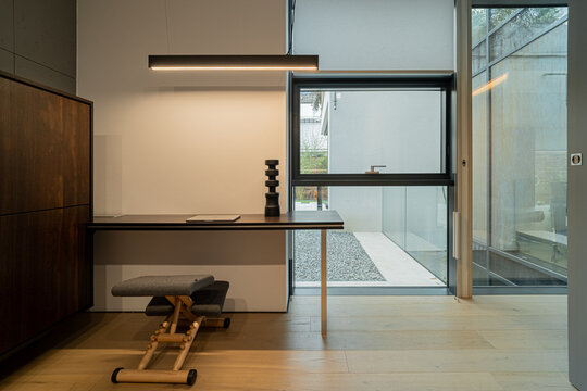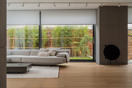 Jaluzelele, realizate din hârtie de orez pe o structură de aluminiu, au fost alese pentru designul lor minimalist și sunt acționate manual printr-un sistem cu contragreutăți..