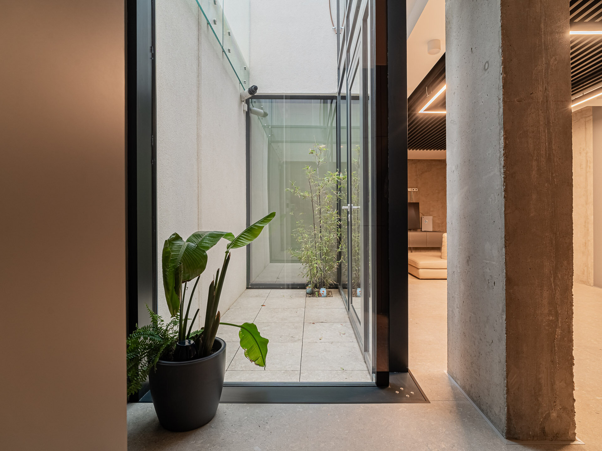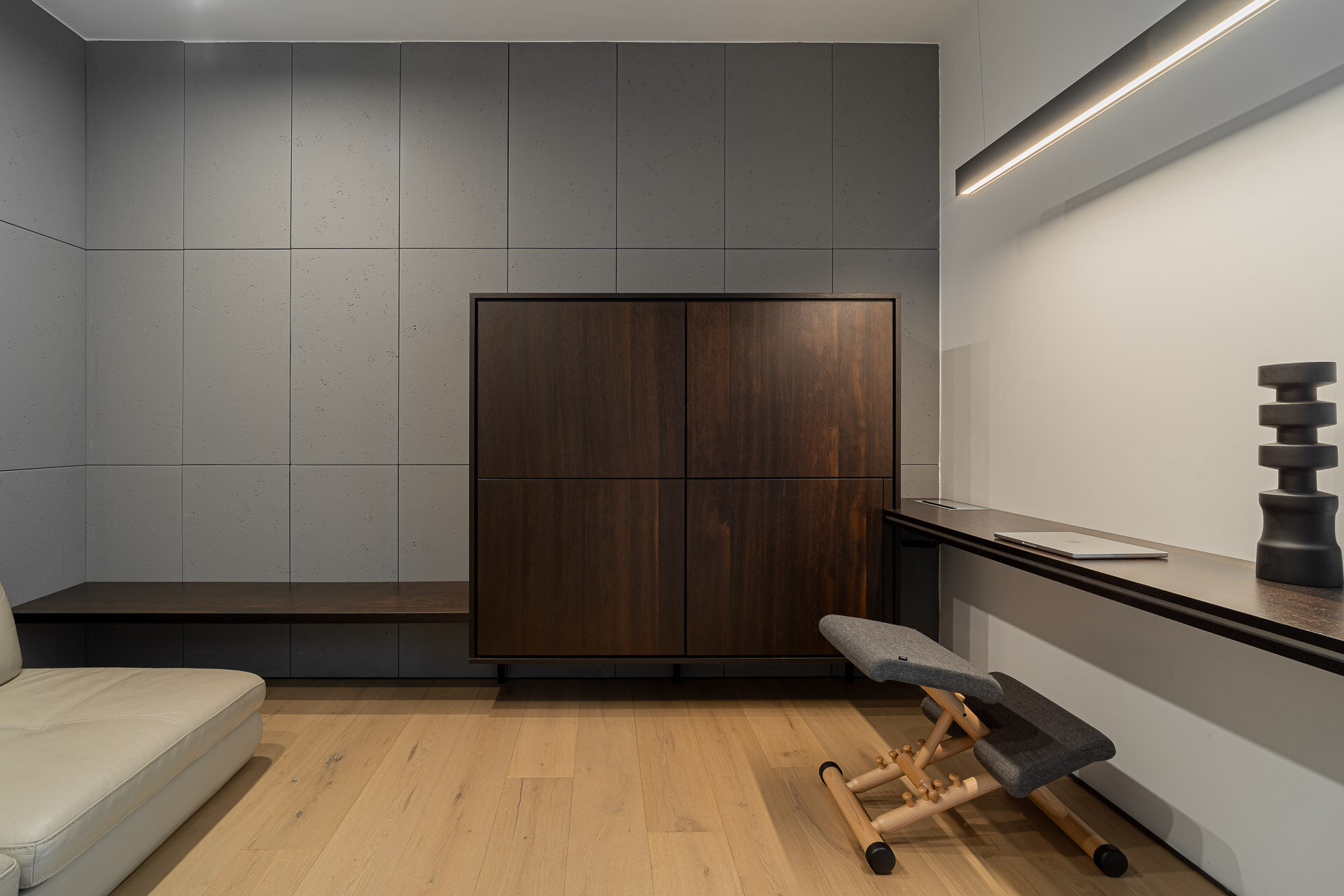 La dormitoare, proporțiile sunt reduse la esențial, iar texturile moi și liniile simple induc relaxare și introspecție. Pielea, betonul aparent, lumina indirectă și piatra naturală oferă un refugiu intim, echilibrat și sofisticat. Această locuință nu este doar un spațiu – este o experiență completă de design contemporan, în care fiecare element este gândit pentru a susține un stil de viață minimalist, dar confortabil.