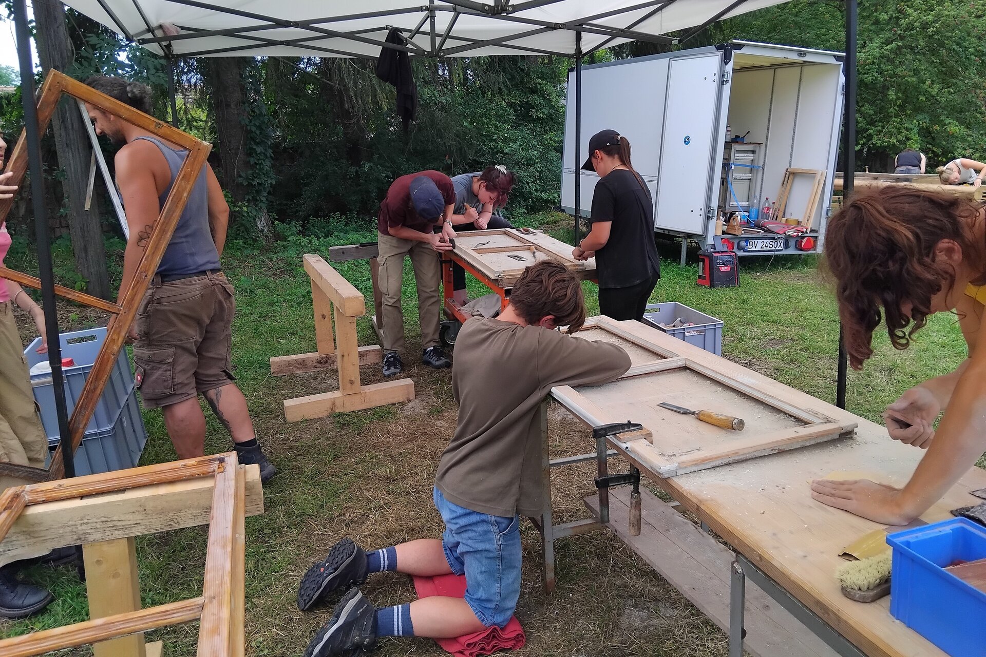 Clădirea necesitând o restaurare integrală, pentru a putea oferi participanților o privire cât mai completă asupra procesului de intervenție, au fost organizate mai multe ateliere tematice care s-au desfășurat în paralel pe durata școlii de vară. Astfel, atelierul de documentare istorică și de cercetare a evoluției aspectului casei parohiale a facilitat reintegrarea vizuală a clădirii în peisajul satului, prin identificarea cromaticii inițiale a casei; porțiuni deteriorate, atât la nivelul interiorului, cât și la exteriorul construcției, au fost refăcute în cadrul atelierului de zidărie tradițională. Ferestrele clădirii au necesitat o atenție deosebită din pricina vechimii lor, o parte dintre acestea fiind supuse unui proces de curățare și recondiționare, atelierul de tâmplărie tradițională fiindu-le dedicat. De asemenea, propuneri privind viitoarea organizare interioară a casei parohiale și aspectul acesteia au fost elaborate în timpul atelierului de design interior. În paralel s-a realizat și o nouă poartă din lemn pentru întregul ansamblu, confecționarea acesteia introducând participanții în tehnicile tradiționale de dulgherie.