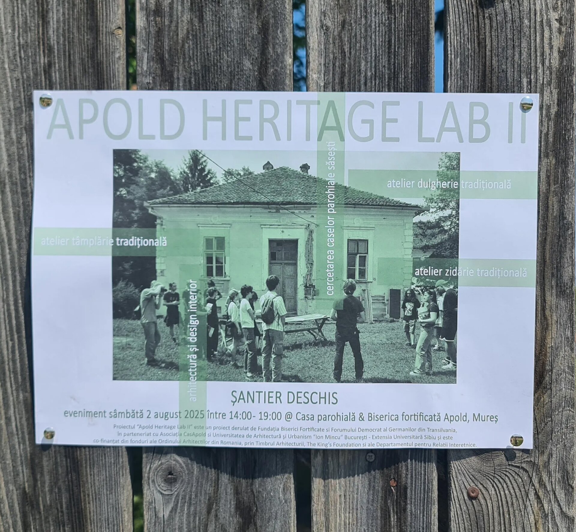 În apropiere de Sighişoara, biserica fortificată din Apold, a fost construită de sașii din Transilvania pe o perioadă de șapte sute de ani, din secolul al XIII-lea până în secolul al XX-lea şi este compusă din zece clădiri de apărare, depozitare și servicii pentru sat, precum și două ziduri de incintă.Din anul 2003, membrii a ceea ce avea să devină asociația CasApold au organizat lucrările de reparații de urgență necesare pentru a preveni degradarea bisericii fortificate. În deceniul următor, degradarea accelerată a fost încetinită prin mai multe proiecte de restaurare făcute posibile prin donații, contribuții proprii și finanțare europeană. Astăzi, biserica primeşte o nouă funcţiune, devenind un centru de învăţare şi creaţie, prin diverse ateliere, şcoli de vară din domeniul arhitecturii sau restaurării dar şi prin activităţi ce promovează cultura şi patrimoniul local și regional.