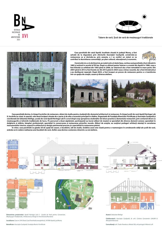 Casa parohială devine, în timpul lucrărilor de restaurare, obiect de studiu pentru studenții din domeniul arhitecturii și restaurare. Organizată de Fundația Bisericilor Fortificate și Asociația CasApold, coordonată de Sebastian Bethge, școala de vară Apold Heritage Lab II a avut drept scop apropierea studenților de latura practică a domeniului restaurării, prin contactul direct cu meșteșugurile și tehnicile tradiționale de lucru. Pe parcursul a două săptămâni, participanții au lucrat alături de meșteri și specialiști din diverse domenii conexe: Sebastian însuși, specialist în dulgherie și zidărie, Alex Herberth, tâmplar profesionist și Lorand Kiss, specializat în conservarea și restaurarea picturilor murale. Alături de aceștia, au susținut prelegeri dr. arh. Liliana Cazacu, atestată în cercetarea monumentelor istorice, dr. arh. Cristina Constantin, expertă în arhitectură și design patrimonial și Pia Prade, specializată în restaurarea pietrei.