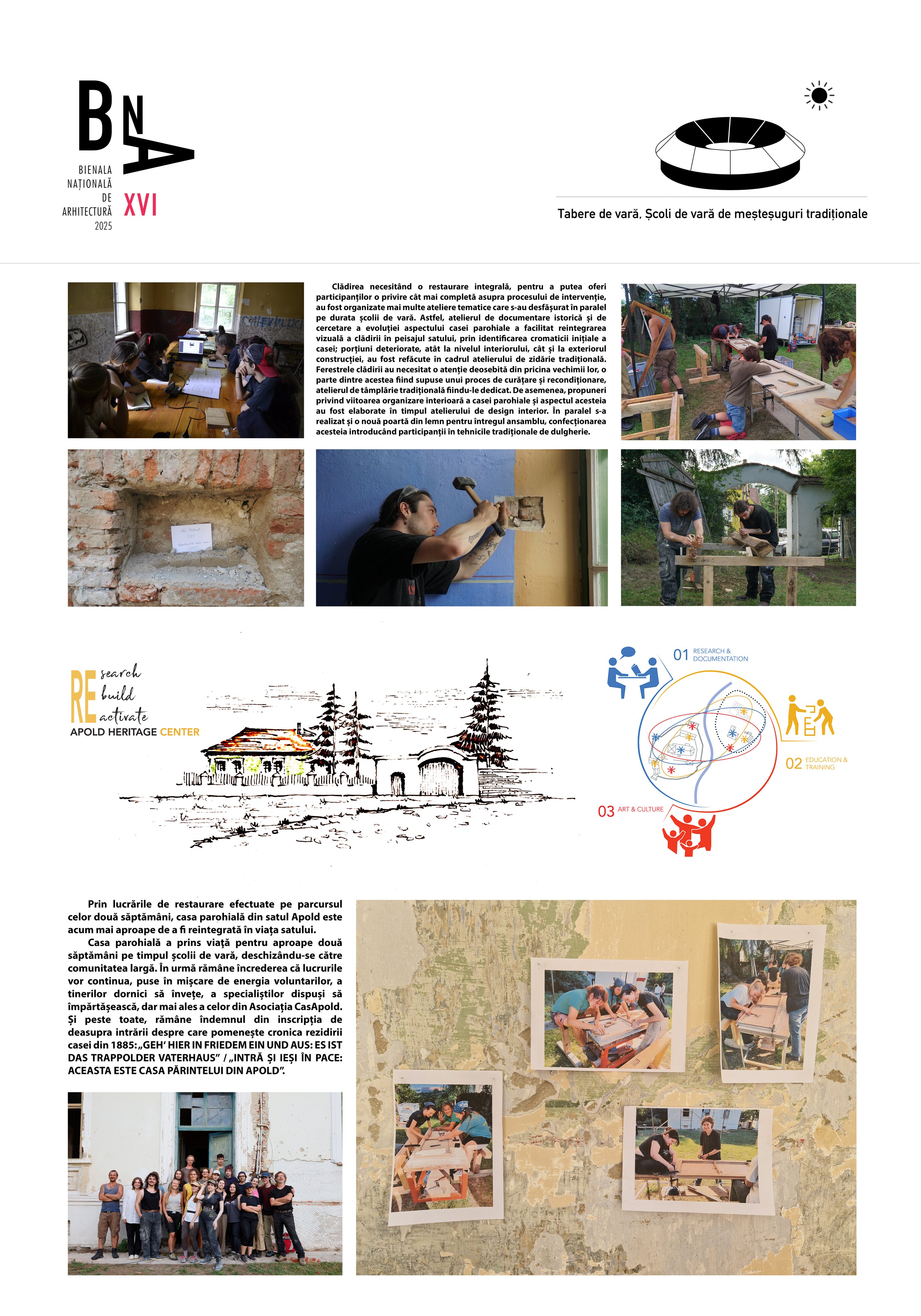 Casa parohială a prins viaţă pentru aproape două săptămâni pe timpul școlii de vară, deschizându-se către comunitatea largă pentru expoziția și evenimentul de mijloc. În urmă rămâne încrederea că lucrurile vor continua, puse în mișcare de energia voluntarilor, a tinerilor dornici să învețe, a specialiștilor dispuși să împărtășească, dar mai ales a celor din Asociația CasApold. Și peste toate, rămâne îndemnul din inscripția de deasupra intrării despre care pomenește cronica rezidirii casei din 1885: „GEH‘ HIEIR IN FRIEDEM EIN UND AUS: ES IST DAS TRAPPOLDER VATERHAUS” / „INTRĂ ȘI IEȘI ÎN PACE: ACEASTA ESTE CASA PĂRINTELUI DIN APOLD”.