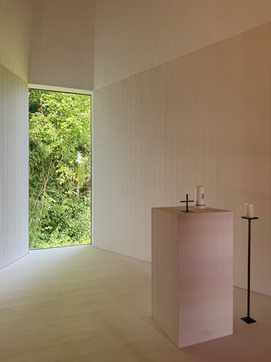 Capela Salgenreute propune un altfel de sacru, la scară umană, care strânge laolaltă și susține apropierea. Un „acasă” comun, în care lumina naturală, împreună cu lemnul — ca material structural și de finisaj — devin elementele principale în crearea atmosferei primitoare și calde.