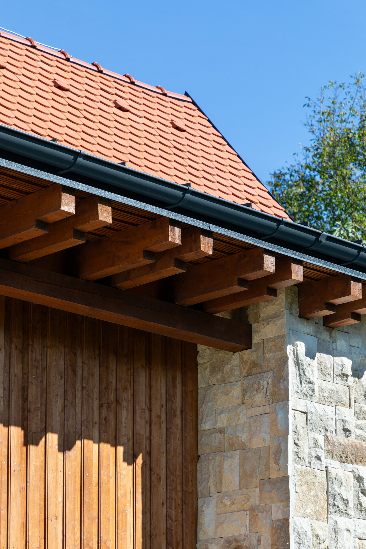 Porticul joacă un rol esențial, atât din punct de vedere funcțional, cât și simbolic. Inspirat de tipologia pridvorului tradițional din arhitectura vernaculară românească, acesta este reinterpretat într-o cheie contemporană, lipsită de ornament redundant, dar plină de semnificație. Nu este doar un element arhitectural, ci o punte simbolică, un loc de așteptare, întâlnire sau liniște. Este un spațiu semi-deschis, în care lumina naturală pătrunde generos, în timp ce acoperișul oferă adăpost.