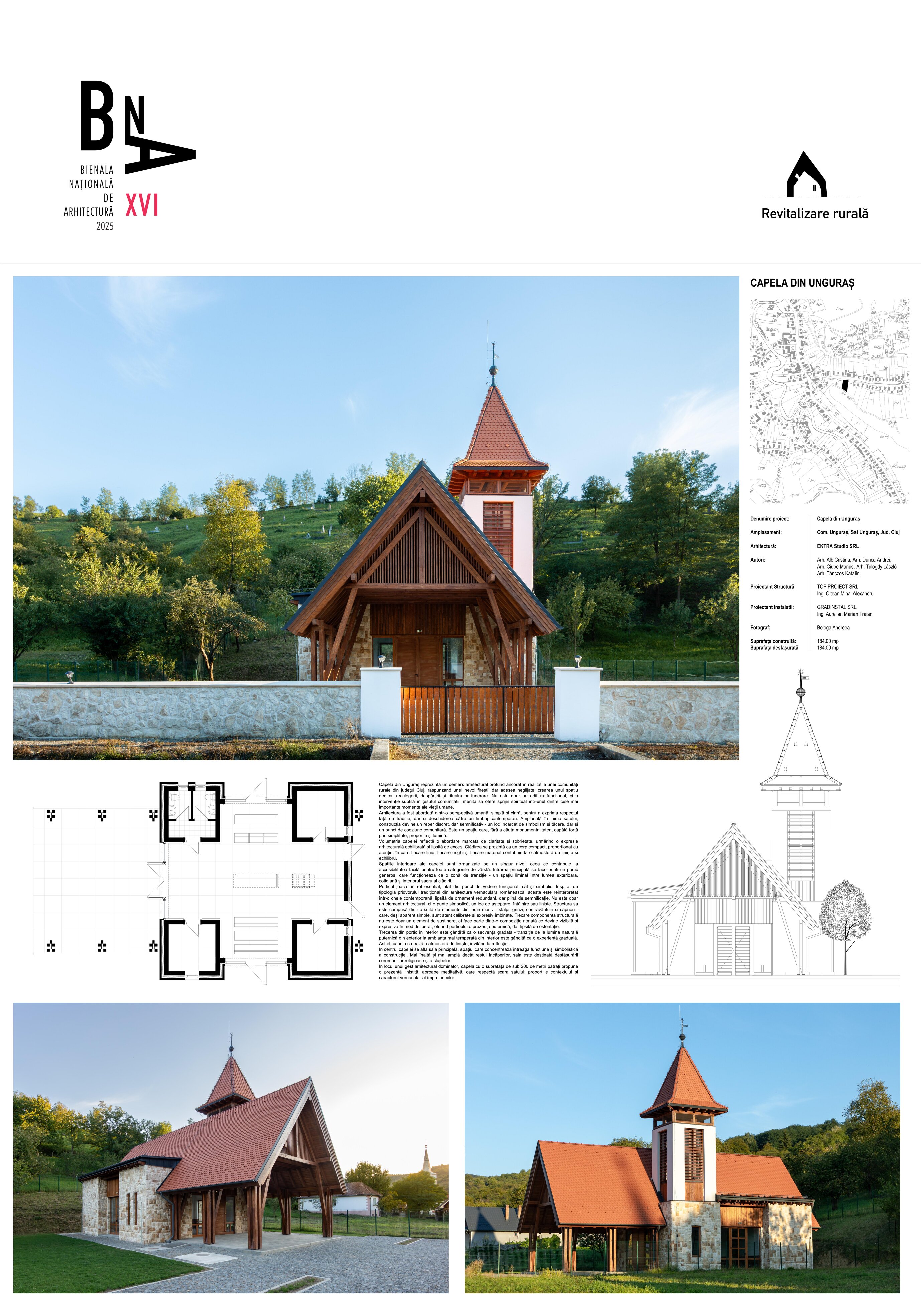 Arhitectura a fost abordată dintr-o perspectivă umană, simplă și clară, pentru a exprima respectul față de tradiție, dar și deschiderea către un limbaj contemporan. Amplasată în inima satului Unguraș, construcția devine un reper discret, dar semnificativ – un loc încărcat de simbolism și tăcere, dar și un punct de coeziune comunitară. Este un spațiu care, fără a căuta monumentalitatea, capătă forță prin simplitate, proporție și lumină.