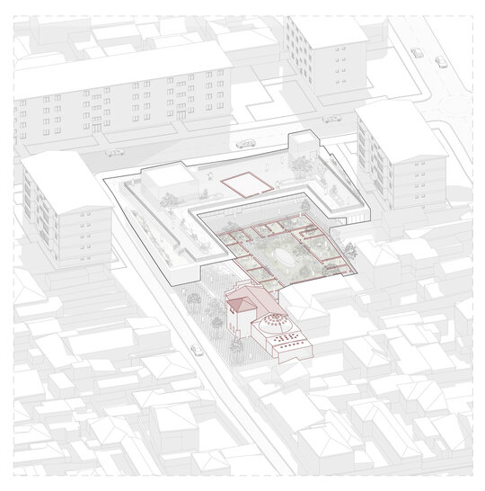 Reactivarea hamam-ului, singura prezență de pe sit, atrage din nou fluxul pietonal și reconectează zona cu țesutul urban, tranformându-o într-o destinație de interes public. Curtea reinterpretată devine un nou spațiu civic, deschis către oraș și generator de coeziune urbană. Această reorganizare definește ritmul și orientarea întregului ansamblu, amplificând vizibilitatea și accesibilitatea hamam-ului, creând un cadru coerent de punere în valoare a memoriei locului. Totodată, la nivel social, introducerea unor spații cu funcțiuni culturale și comunitare întregește noul Külliye și oferă un cadru pentru socializare cotidiană, menținând continuitatea utilizării publice a ansamblului.