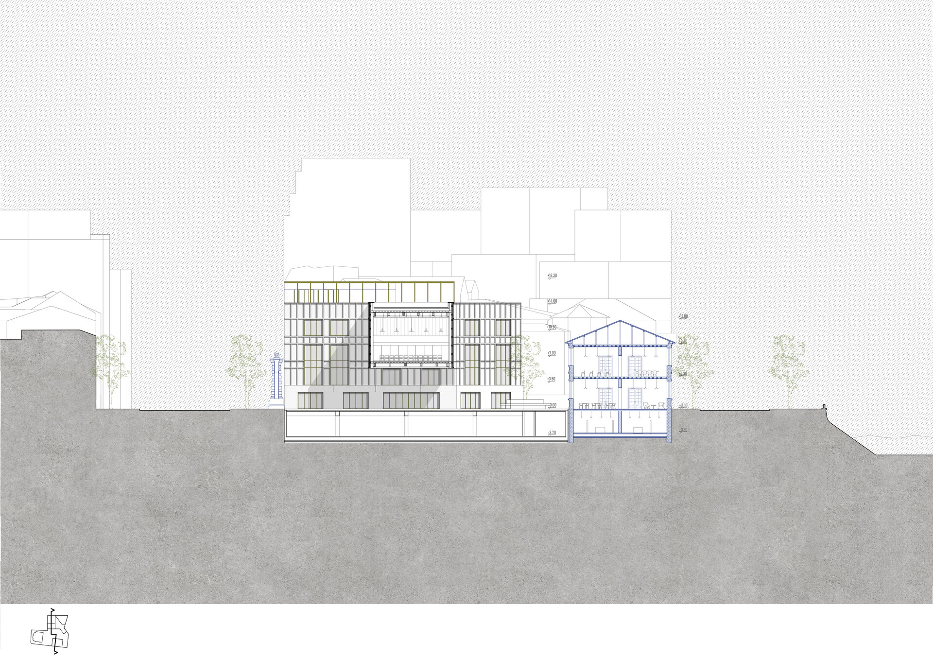 Un element definitoriu în conturarea conceptului arhitectural a fost reprezentat de contextul istoric al sitului, ancorat într-o perioadă în care Bucureștiul era cunoscut drept un oraș al grădinilor, un peisaj urban în care natura și spațiile verzi aveau un rol esențial în viața cotidiană. În mod particular, amplasamentul se află pe locul fostei Grădini cu Cai, un spațiu emblematic al secolului al XIX-lea, destinat întâlnirilor, spectacolelor de teatru și socializării, devenit astăzi un reper al memoriei colective. Acest fragment de istorie locală a reprezentat fundamentul ideii de grădină urbană ca spațiu cultural și comunitar, inspirând o reinterpretare contemporană care să valorifice acest spirit al locului. Astfel, grădina capătă valoare de matrice compozițională, un fundal simbolic în jurul căruia se construiește întreaga narațiune arhitecturală a proiectului.