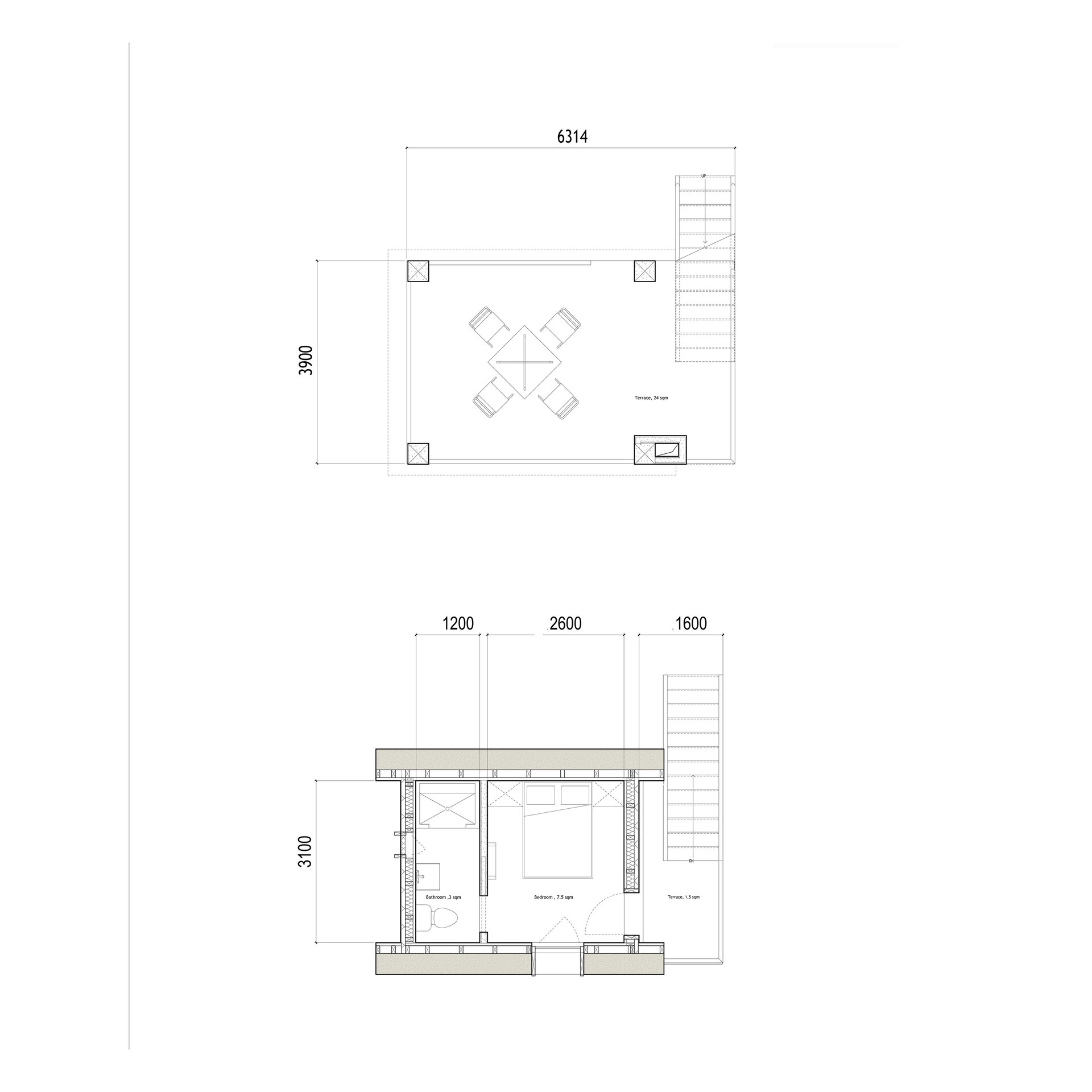 Acesta are în componența lui 31 de căbănuțe, care asigură nevoia de retragere. Acestea, fiind amplasate într-un câmp de stuf, prind o poziție foarte intimă, ascunzându-se printre stuful des de 2 metri înălțime. Cabana înălțată și zona în sine oferă o priveliște pașnică asupra naturii și a Cetății Halmyris și, totodată, un spațiu multifuncțional: patul se poate rabata în perete și o masă iese din podea pentru a crea un punct de lucru. În același timp, podul rezultat din compartimentarea băii este folosit ca spațiu de depozitat bagaje.