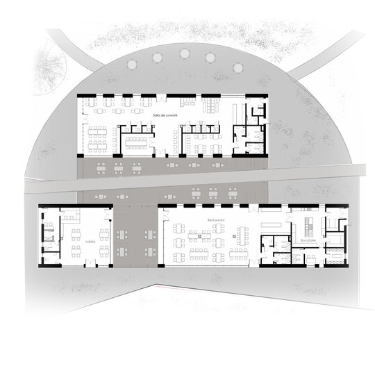 Pe lângă restaurant și lobby, există un Co-work Cafe, unde nomazii digitali pot să se sfătuiască, să socializeze și să muncească. Totodată, aici este zona unde se desfășoară activitățile cu comunitatea.