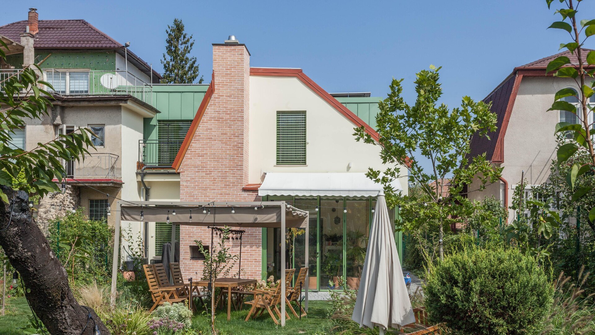 S-a acordat o atenție deosebită amenajării grădinii din spate cu diferite locuri de stat, de luat masa etc, iar în capătul parcelei s-a construit o piscină deschisă. Astfel casa și grădina au devenit o veritabilă oază de relaxare și confort, efectiv la câțiva pași de mers pe jos de centrul orașului.