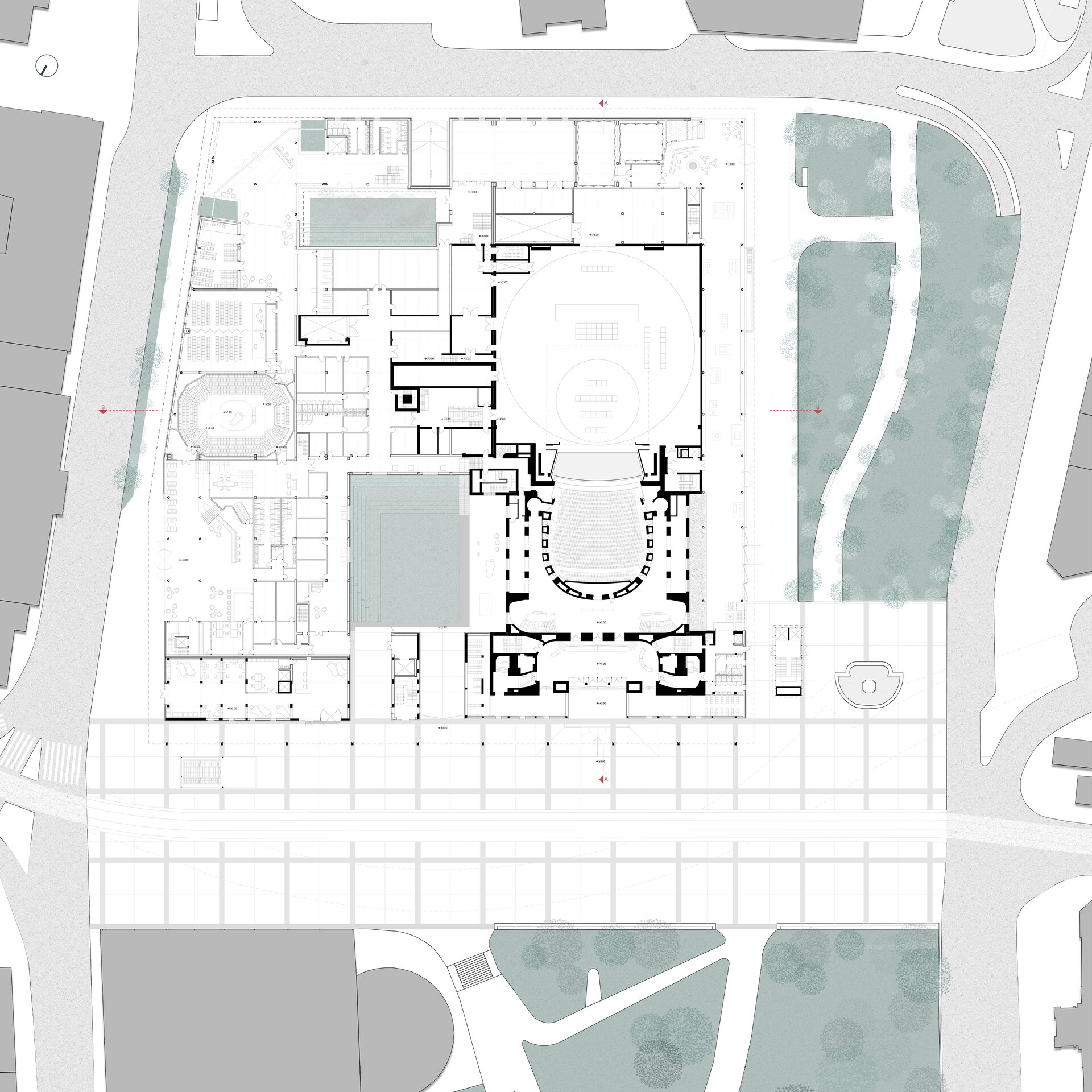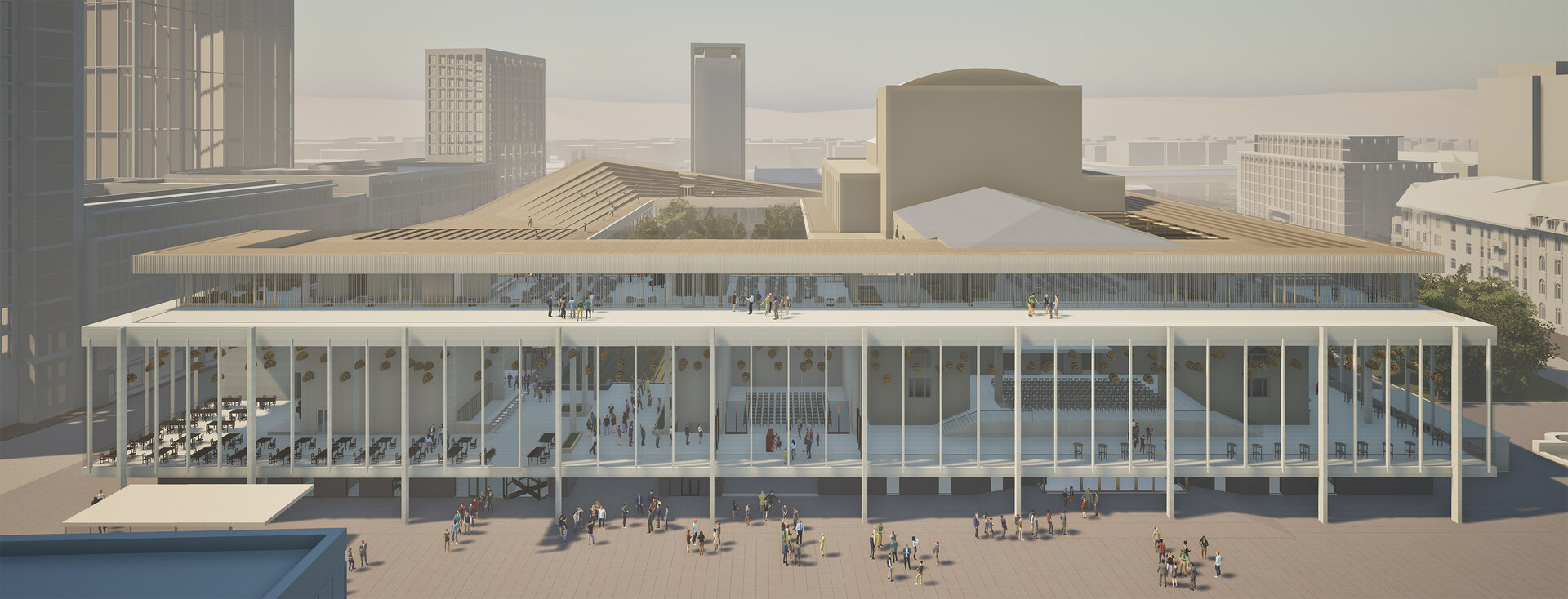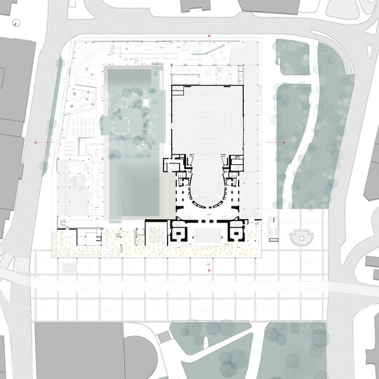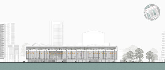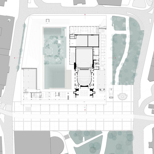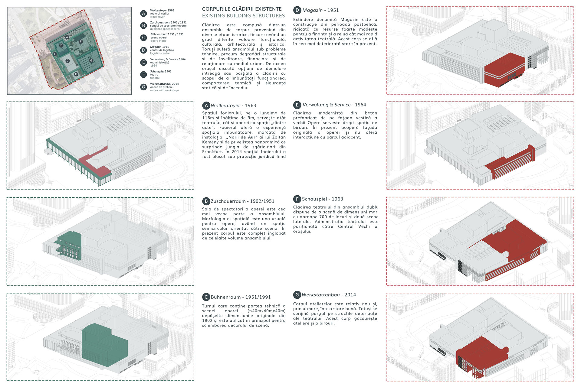 Dincolo de disfuncționalitățile tehnice și structurale, ansamblul actual este caracterizat de o ineficiență notabilă în utilizarea spațiului, o relație deficitară cu mediul urban înconjurător și o popularitate în declin a programului de teatru liric. Astfel, intervenția țintește o revitalizare a operei prin conectare la spațiu public, implementarea unui deschis publicului pe parcursul întregii zile și diversificarea ofertei culturale. O asemenea întărire a conexiunii între oraș și operă trebuie facilitată prin intermediul foaierului, care constituie elementul de legătură între viața urbană obișnuită și cea artistică a operei, având rolul de a media interacțiunea între cele două sfere în momentele în care cortina este trasă și a pregăti spectatorul înainte de a participa la actul artistic.