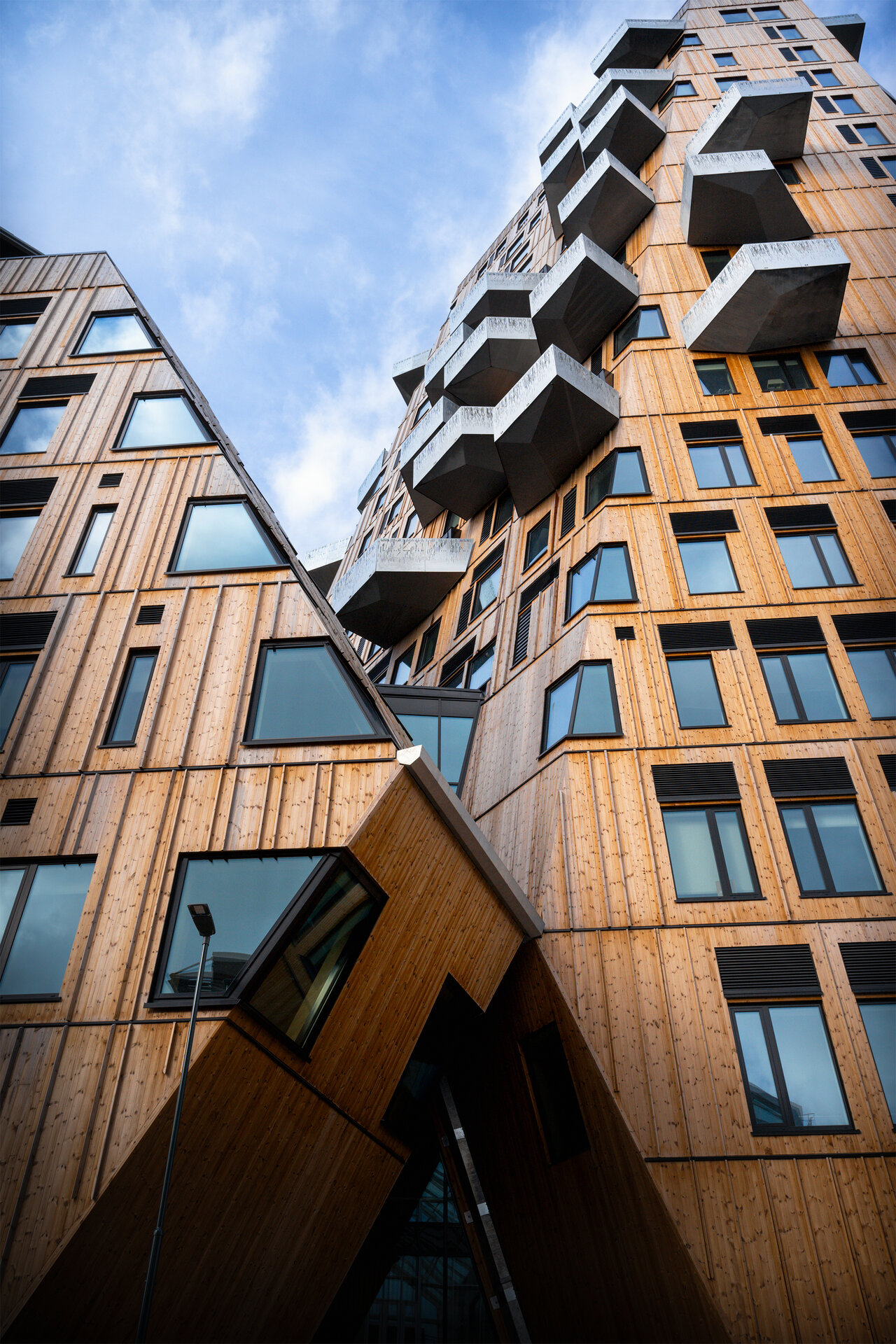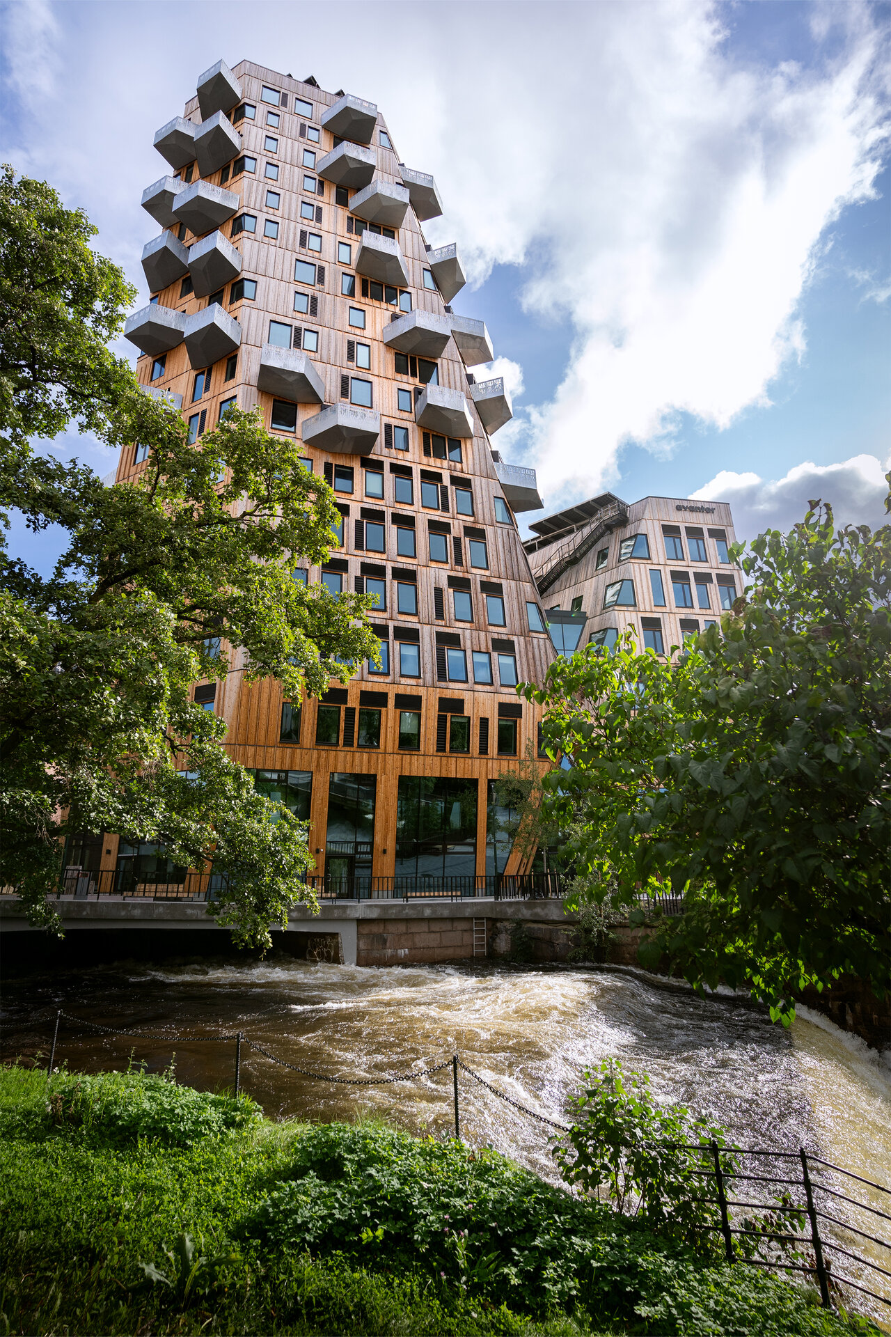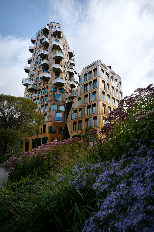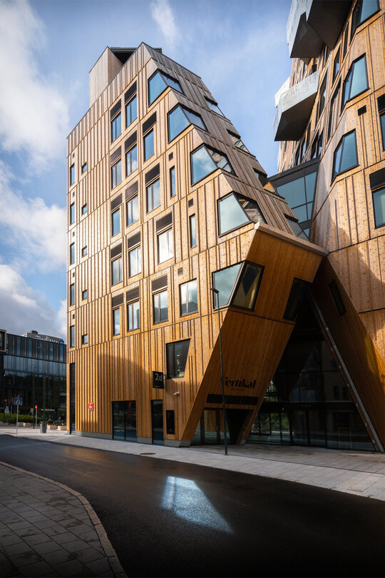Situată în districtul Nydalen din Oslo, Vertikal Nydalen, proiectată de Snøhetta, marchează un nou capitol în arhitectura urbană sustenabilă. Finalizată în 2024, clădirea de 18 etaje reunește restaurante la parter, cinci niveluri de birouri și 40 de apartamente, toate integrate într-o piață publică nou creată, de-a lungul râului Akerselva. Mai mult decât un turn, proiectul demonstrează cum sustenabilitatea, expresia materială și viața urbană pot fi unite într-un singur gest arhitectural.