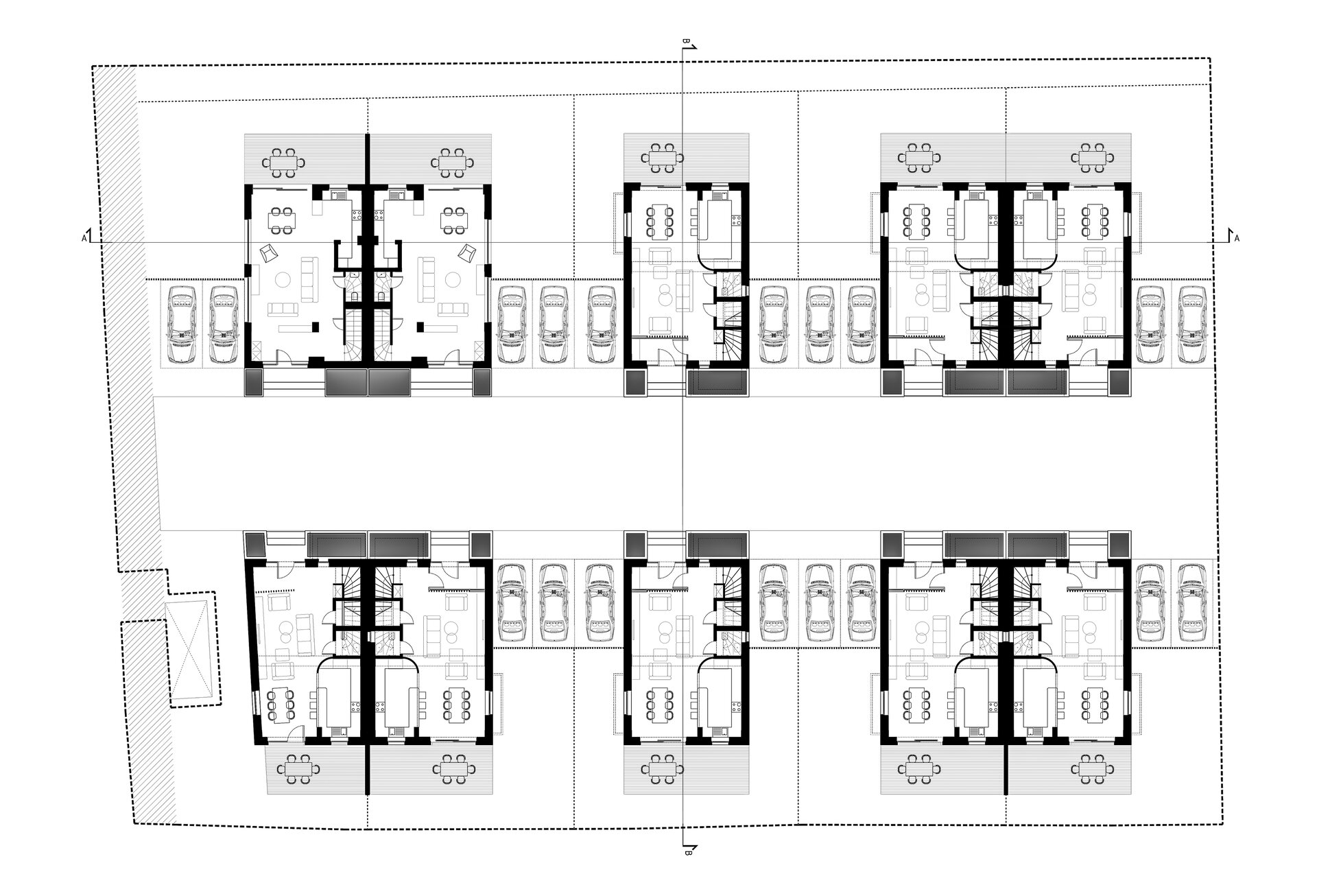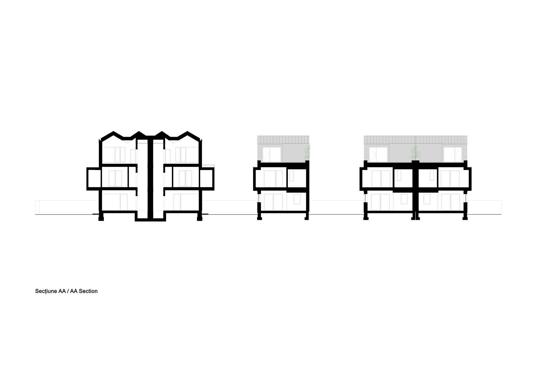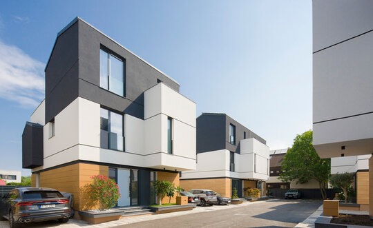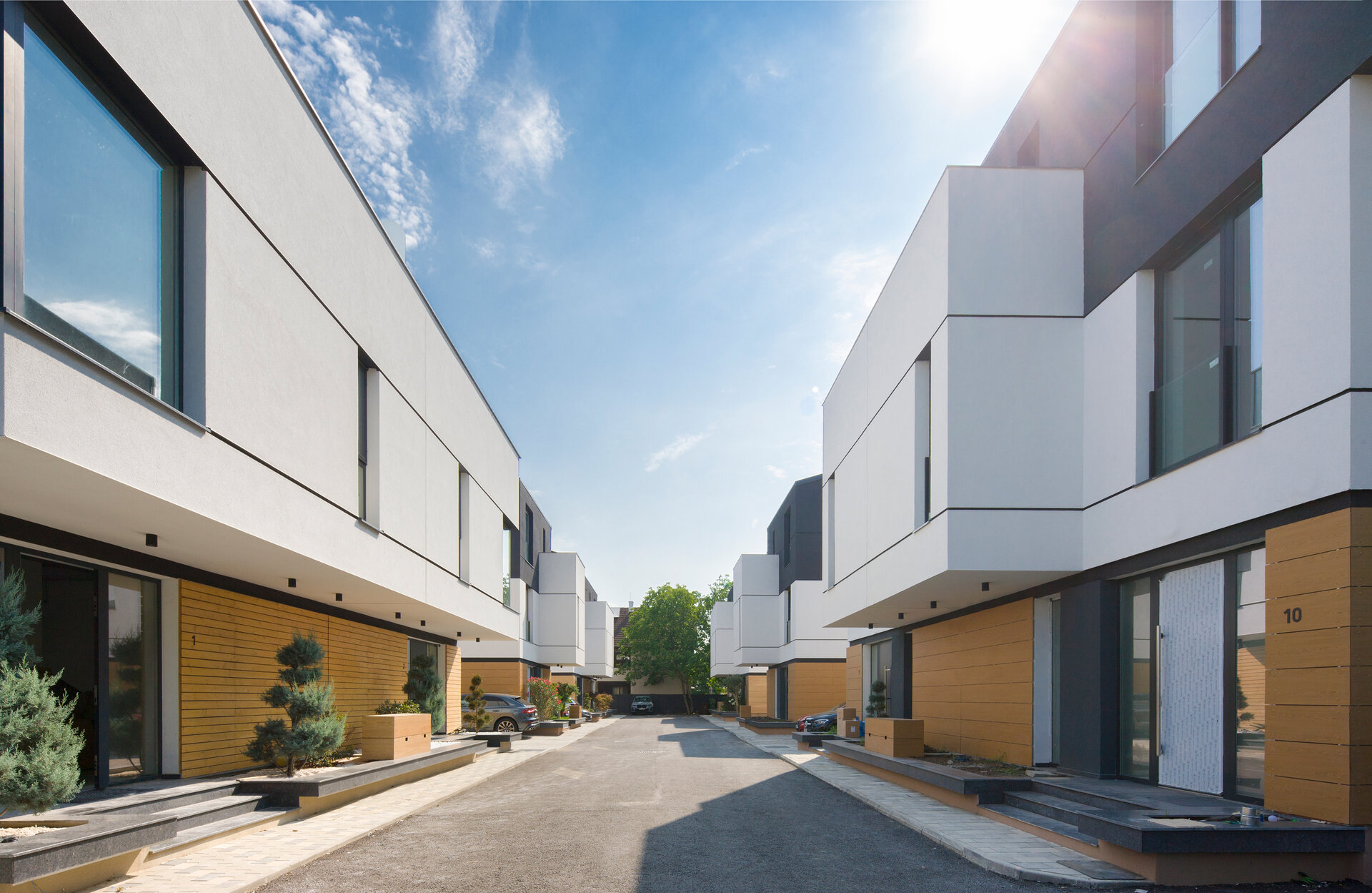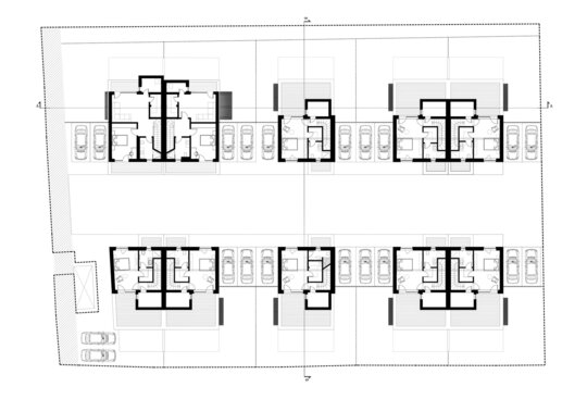 Așa au apărut cele 6 case a căror amprentă la sol nu depășește 85 mp lăsând astfel loc pentru grădină. Suprafața caselor se desfășoară pe verticală având parterul ocupat de bucătărie, loc de luat masa și living urmat de etajul 1 și 2 care reprezintă zona de noapte (dormitoare si băi).