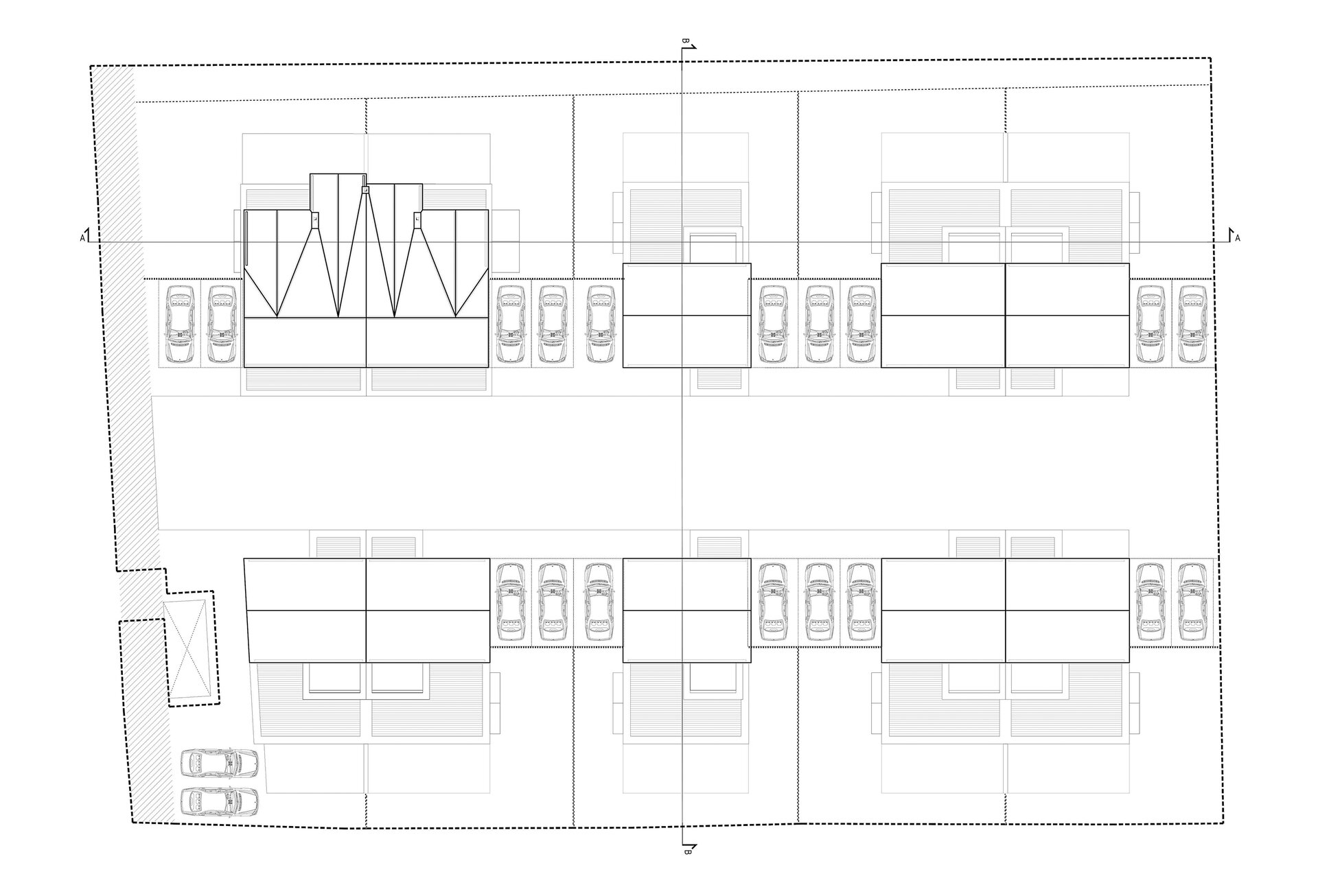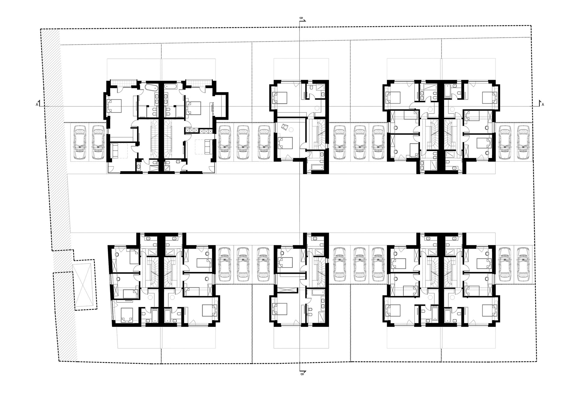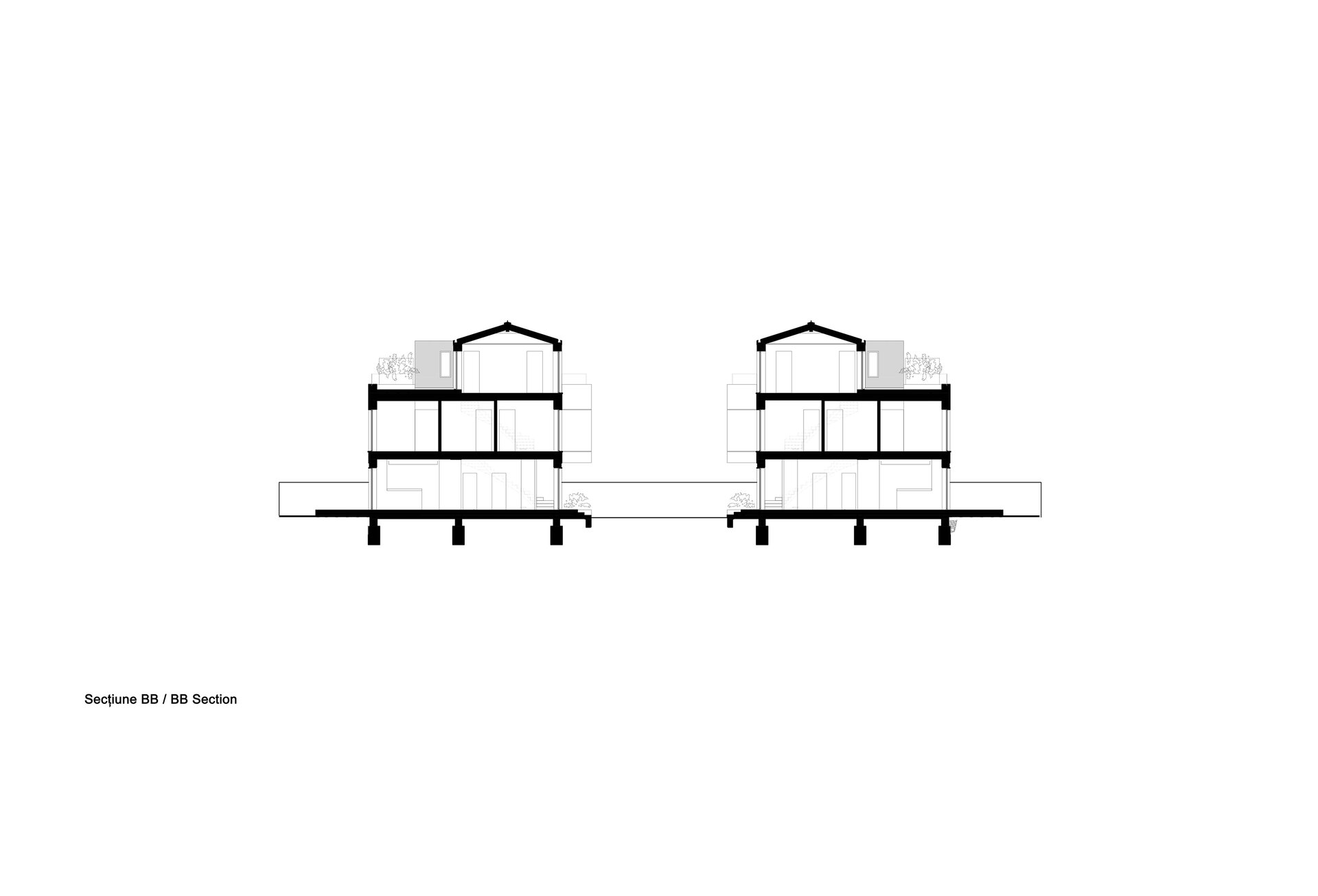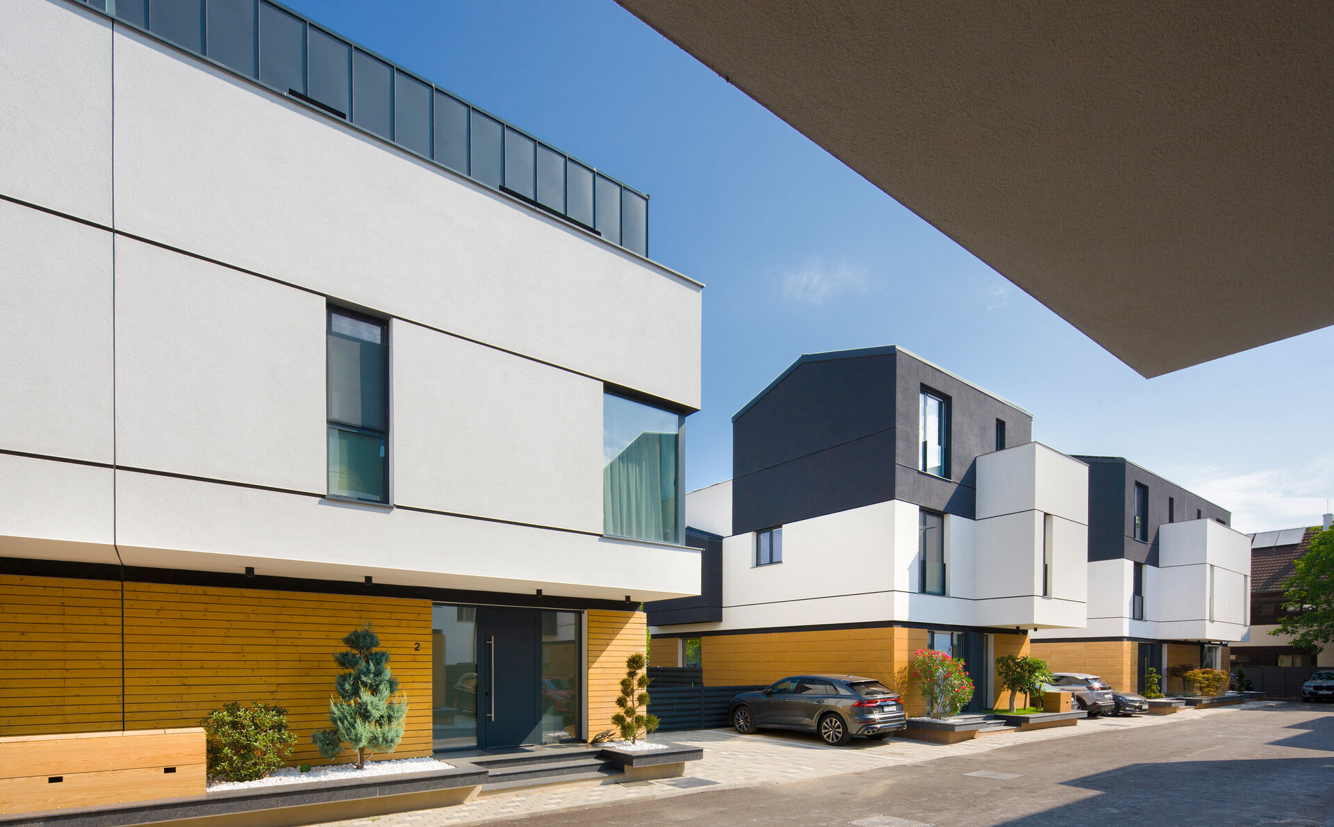Așa au apărut cele 6 case a căror amprentă la sol nu depășește 85 mp lăsând astfel loc pentru grădină. Suprafața caselor se desfășoară pe verticală având parterul ocupat de bucătărie, loc de luat masa și living urmat de etajul 1 și 2 care reprezintă zona de noapte (dormitoare si băi).