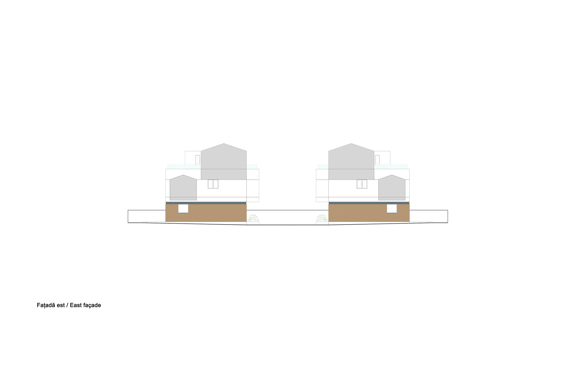 Pentru a evita masivitatea întregului ansamblu am încercat să tratăm diferit cele 3 niveluri ale clădirii. Astfel avem 3 straturi pentru fiecare etaj. Ultimul etaj a fost gândit ca o casă tip barnhouse.
