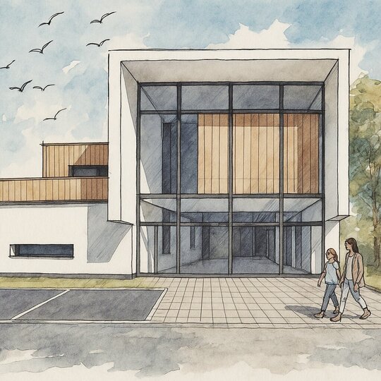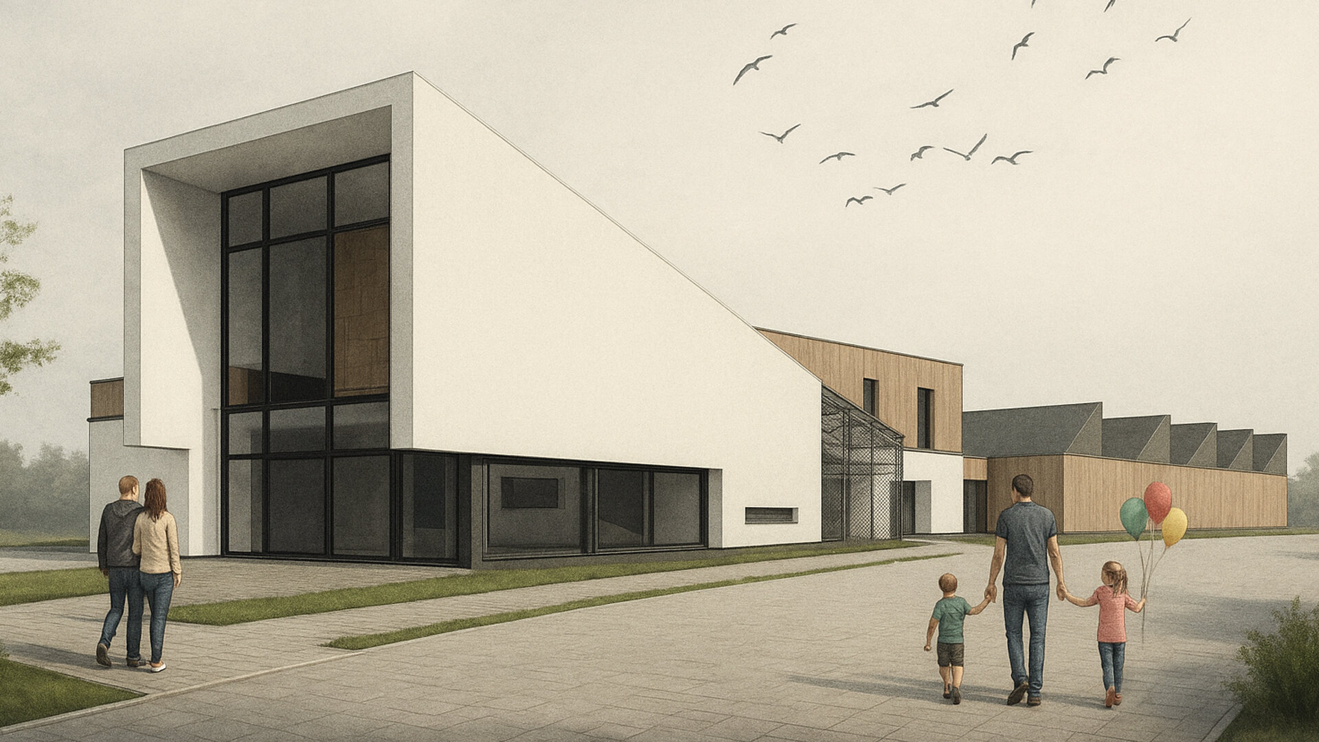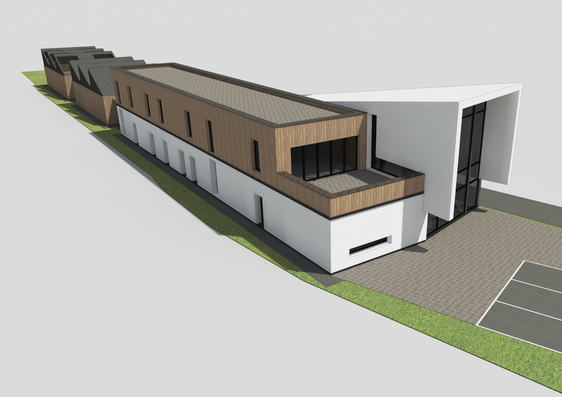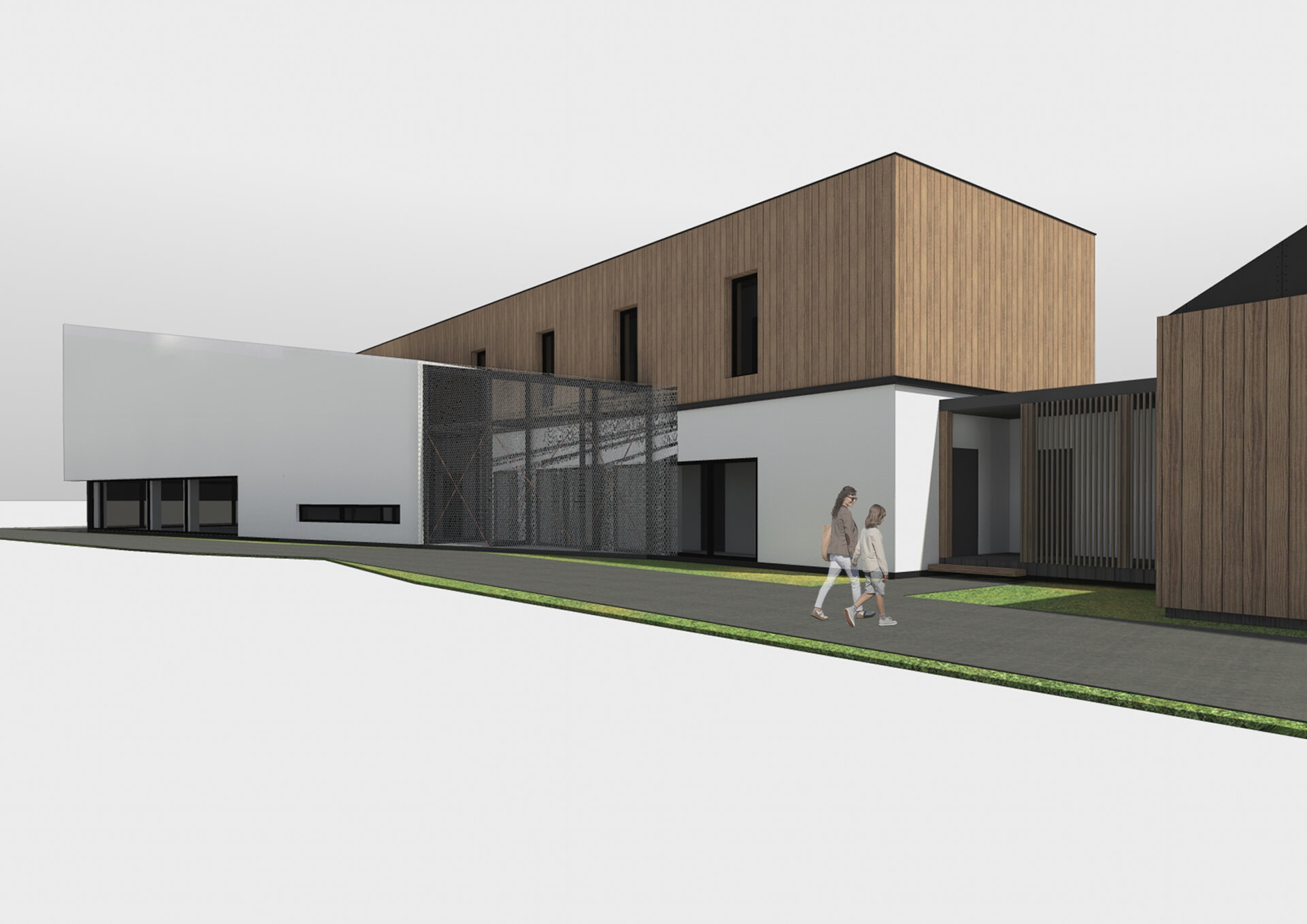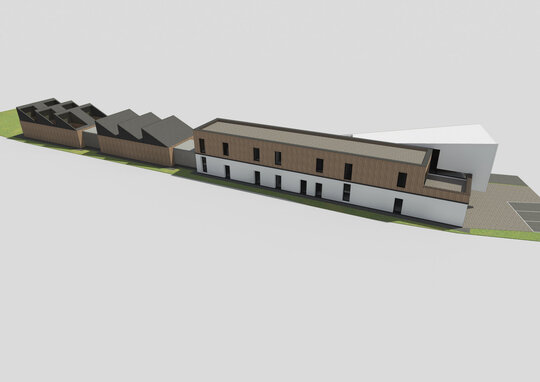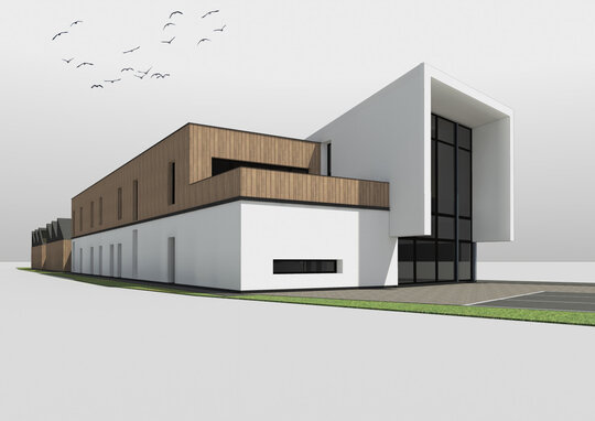Pentru a îmbina zonele de funcțiuni publice destinate vizitatorilor centrului și zonele private de tratare și cercetare destinate animalelor sălbatice am grupat volumul arhitectural astfel: