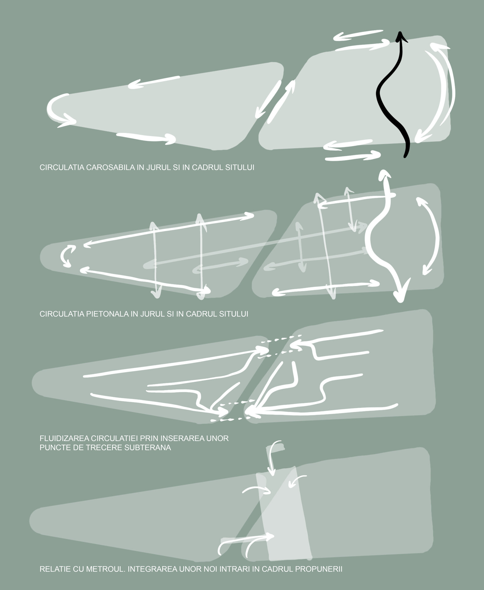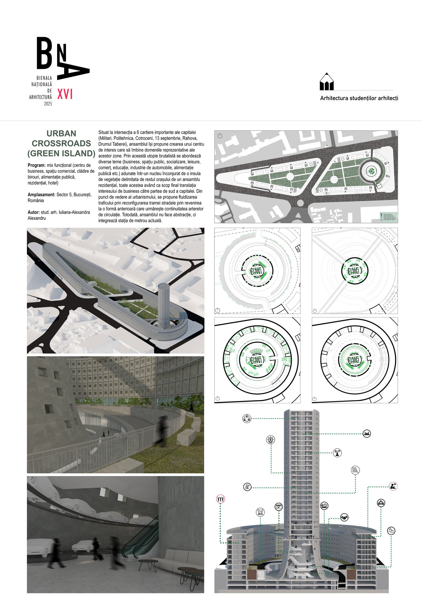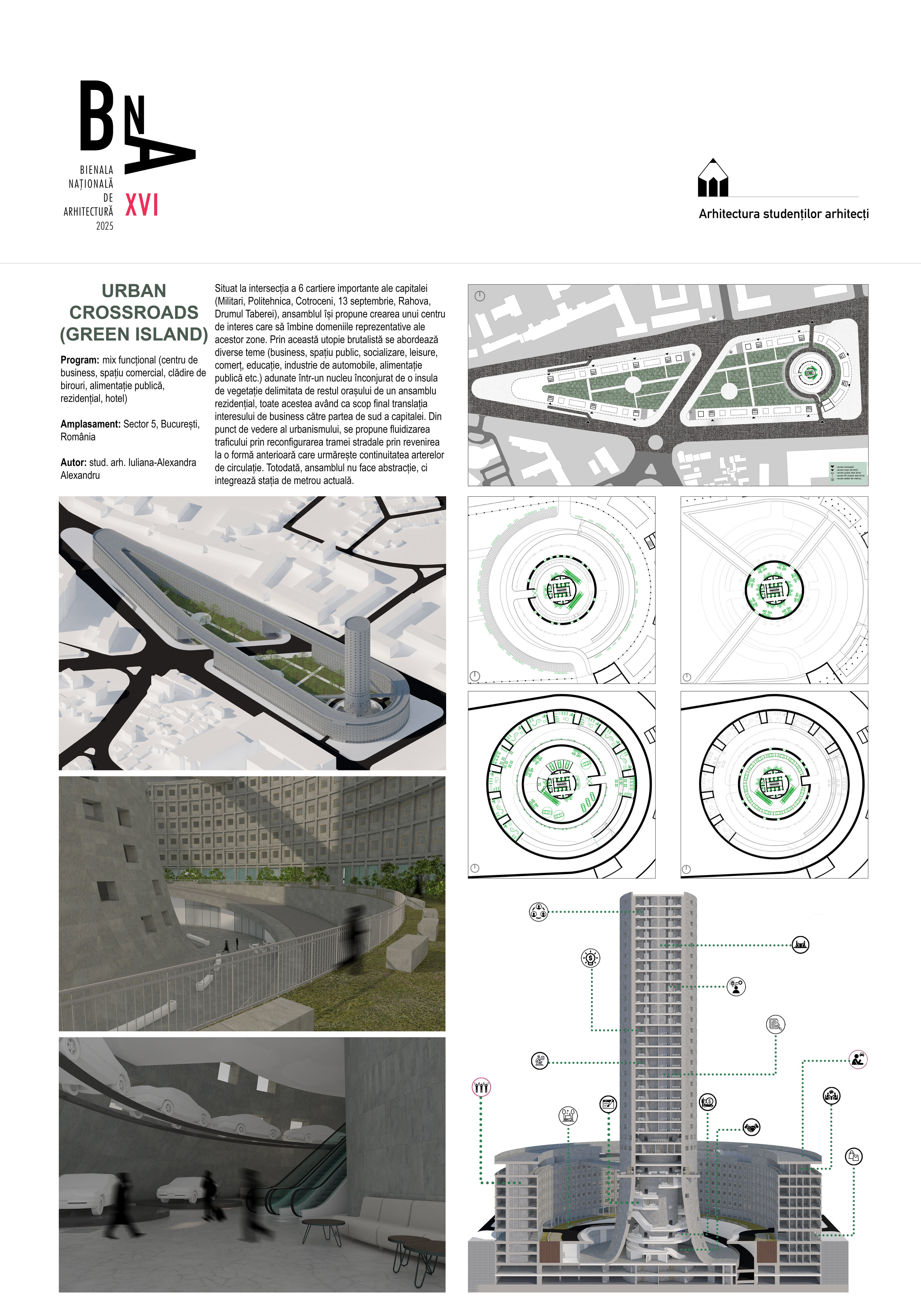 Per total, propunerea urmărește o diversitate de trasee, funcțiuni, circulații, activități și categorii de oameni, aduse împreună sub umbrela unei imagini unitare, ca o oază utopică în cadrul țesutului urban.