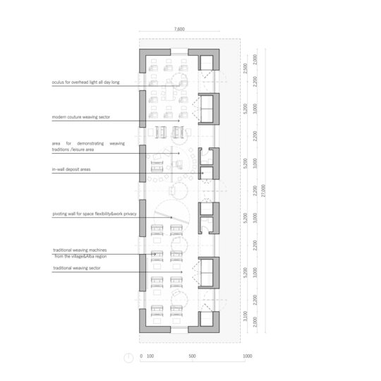 Inima proiectului este centrul și atelierul de țesut, un spațiu în care meșteșugul tradițional este recuperat și împărtășit. Mai mult decât o clădire, centrul pentru vizitatori creează un sentiment de comunitate, oferindu-le localnicilor, artizanilor și vizitatorilor posibilitatea de a se conecta cu patrimoniul prin experiențe practice.