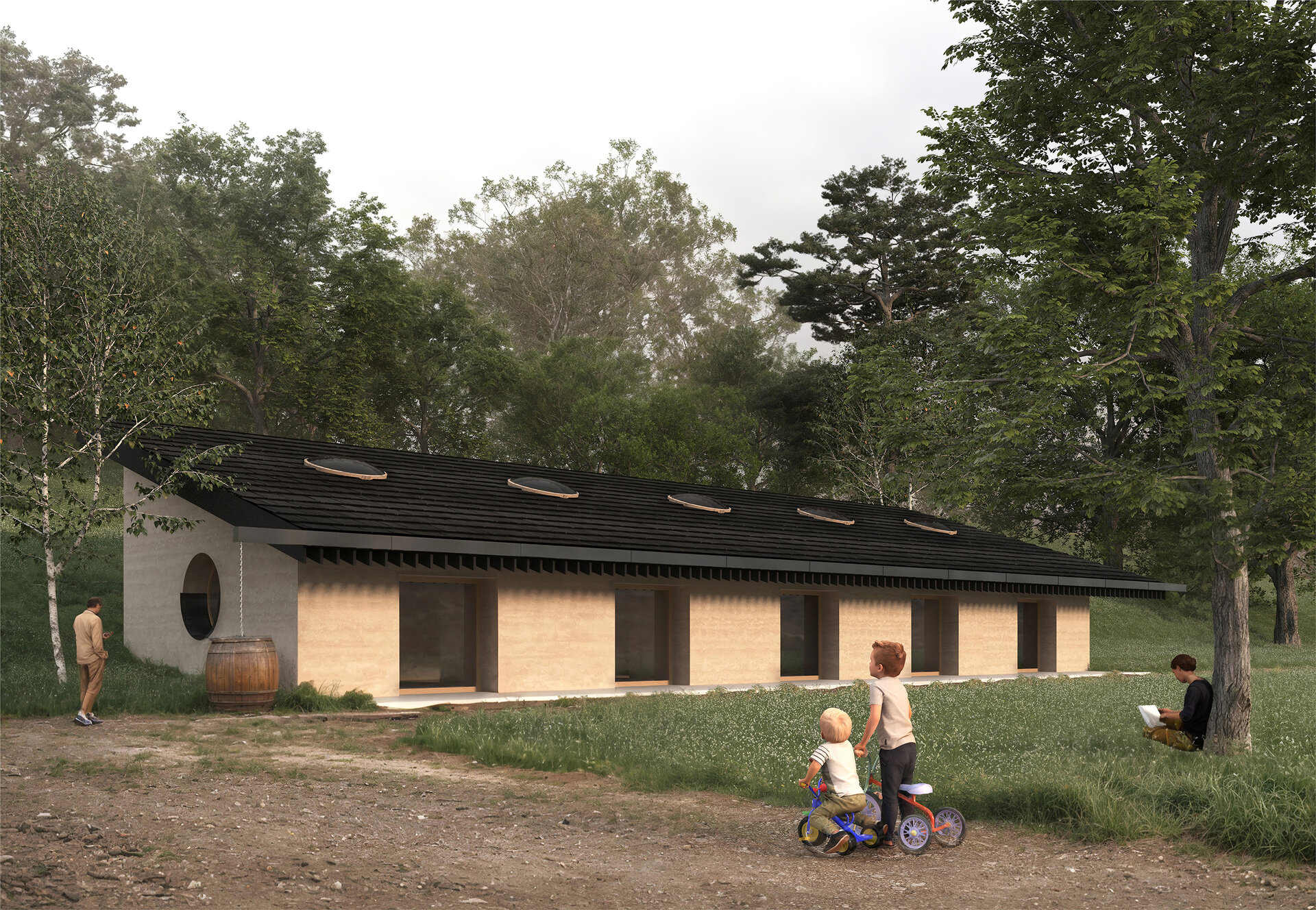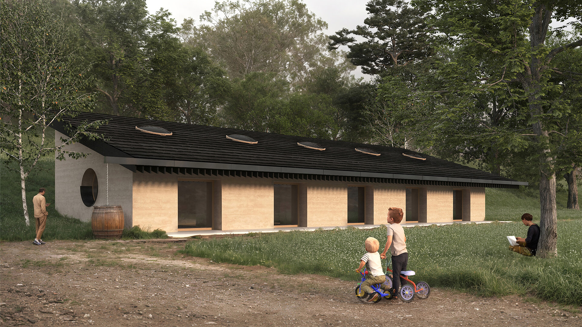 Durabilitatea este un principiu central, prin utilizarea materialelor locale și naturale, precum lemnul, piatra și betonul de cânepă – produs local, din resurse regionale. Materialele recuperate din structuri abandonate sunt reintegrate, reducând risipa și întărind legătura dintre trecut și prezent.