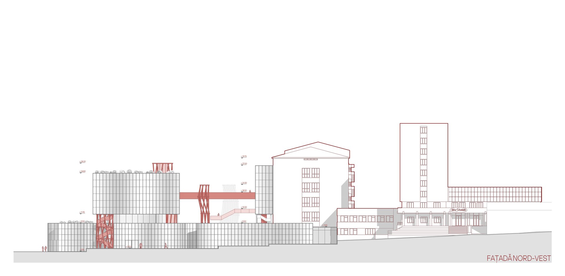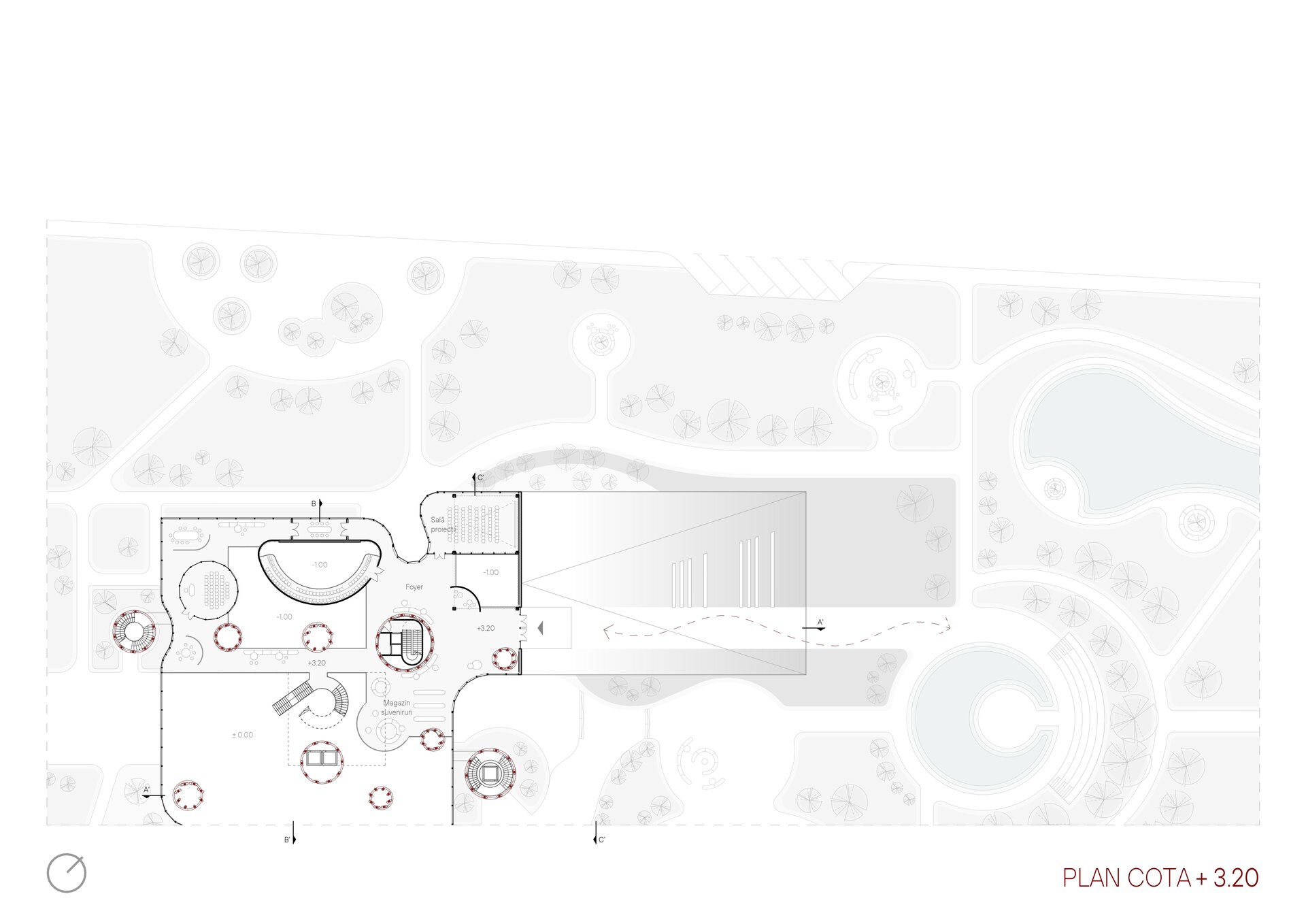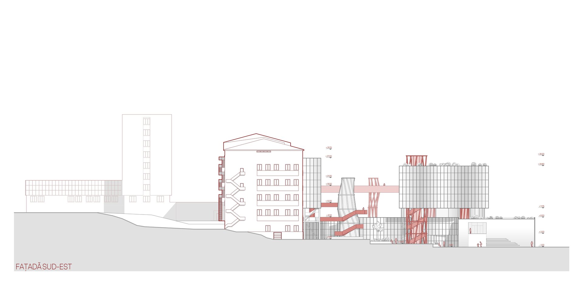 Din punct de vedere volumetric, Casa Ciocolatei este un ansamblu arhitectural deschis, integrat în contextul urban, cu acces principal de la Strada Mihai Viteazul, marcat de o bară suspendată care adăpostește atelierele de ciocolată. Volumetria clădirii este organizată în formă de „U”, deschisă spre parc, accentuată de o rampă largă care conectează spațiile interioare cu exteriorul. Un element distinctiv al proiectului este fațada dublă atașată de corpul de producție a Fabricii Bucuria, oferind posibilitatea explorării procesului de producție fie de la distanță, fie prin acces direct în fabrică. În plus, un accent vertical a fost introdus atât ca punct de acces rapid din parcarea subterană în parc, cât și ca turn de belvedere, oferind o perspectivă favorabilă spre lacul Albișoara și contribuind la compoziția arhitecturală.