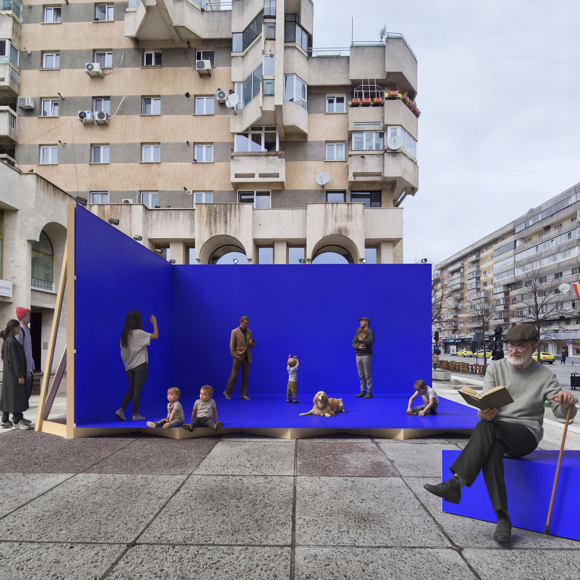 Ziua, scena devine un loc viu, plin de energie, un punct de reper în oraș și de interacțiune pentru oameni de toate vârstele. Fiecare vizitator poate adăuga propria prezență și contribuție la dinamica locului, transformându-l într-un spațiu comun. Aici poți sta, discuta, juca, sau pur și simplu să te bucuri de acest refugiu urban.