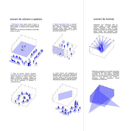 Seara, scena se transformă într-un spațiu dedicat artelor performative, aducând un flux de energie și spectacole de teatru și dans care captează atenția și inspiră participanții. Astfel, acest proiect nu este doar un loc fizic, ci o invitație de a trăi și de a experimenta un colț din oraș, un loc în care fiecare om are puterea de a modela atmosfera și de a adăuga sens, în timp ce spațiul devine un catalizator al creativității și comunității.