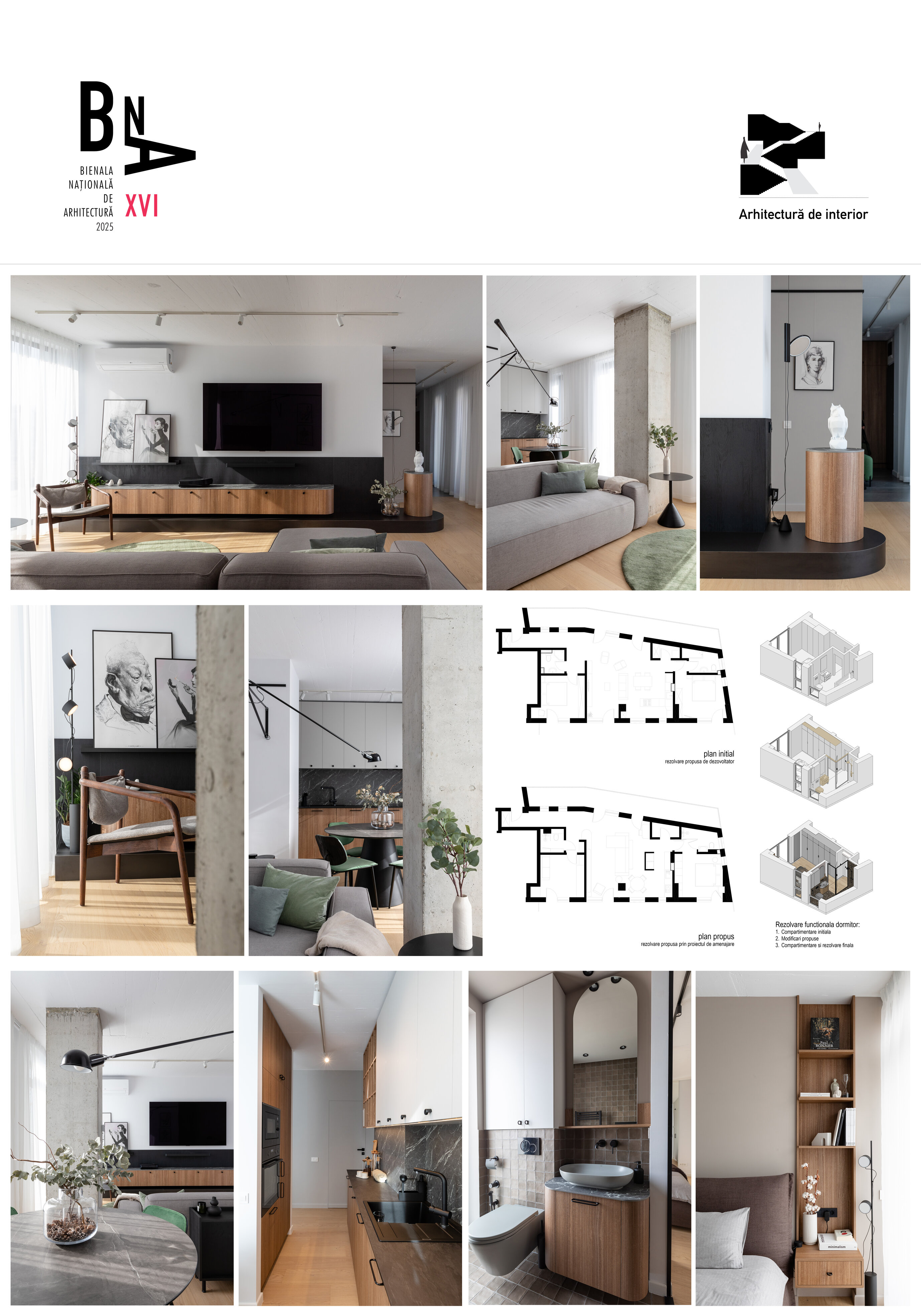 Întreaga amenajare mizează pe coerență vizuală, claritate funcțională și detalii rafinate, reușind să transforme o configurație dificilă într-un interior fluid, personal și echilibrat.