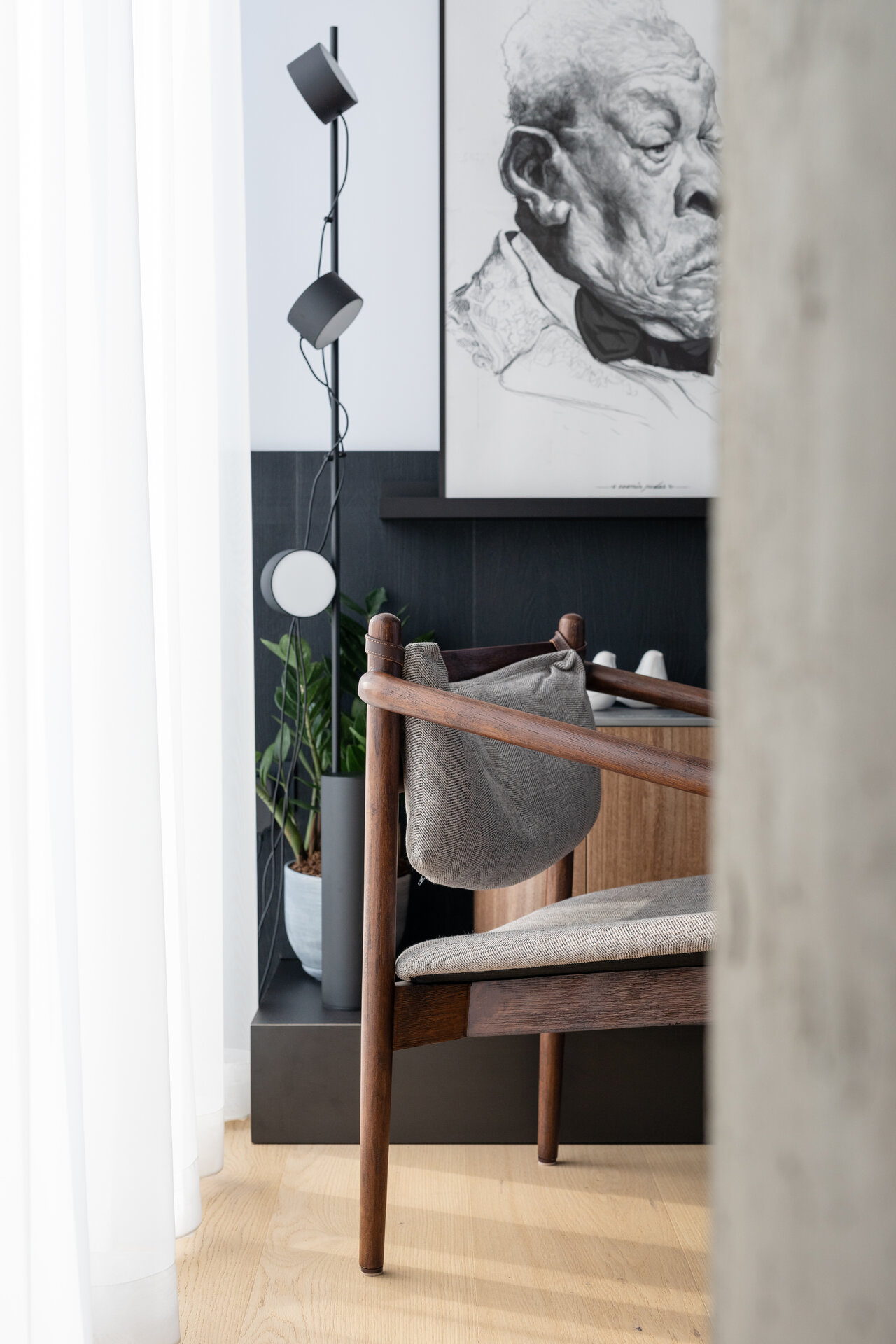 Situat la un etaj retras, acest apartament din Cluj-Napoca propune o abordare echilibrată între funcționalitate și expresie personală, într-o compoziție care îmbină minimalismul cu influențe mid-century modern. Departe de a se încadra într-un stil pur, amenajarea dezvoltă un limbaj propriu, în care simplitatea formelor și proporțiile atent controlate devin fundalul ideal pentru intervenții discrete, dar esențiale.