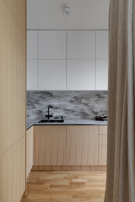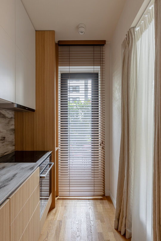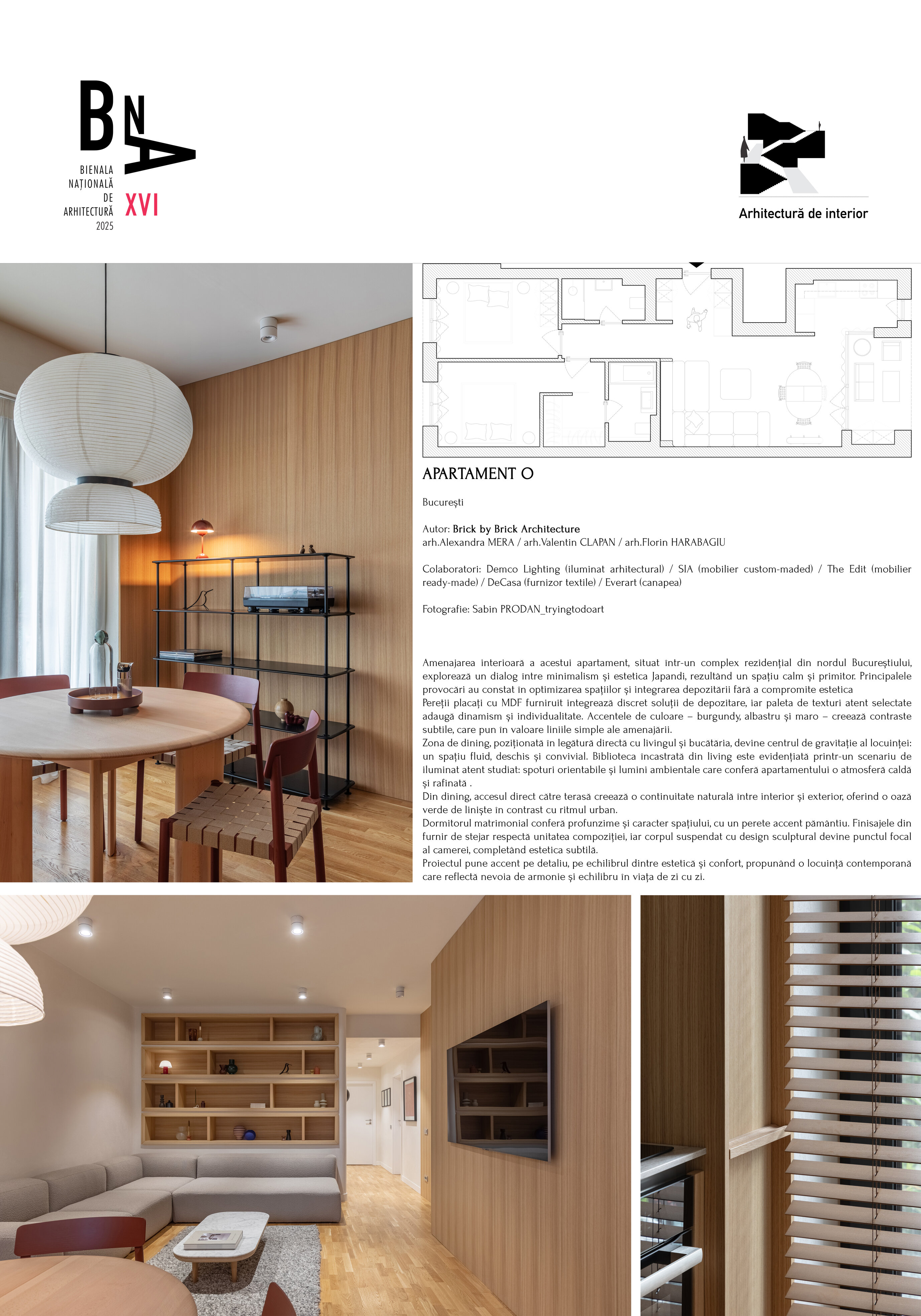 Amenajarea interioară a acestui apartament, situat într-un complex rezidențial din nordul Bucureștiului, explorează un dialog între minimalism și estetica Japandi, rezultând un spațiu calm și primitor. Principalele provocări au constat în optimizarea spațiilor și integrarea depozitării fără a compromite estetica