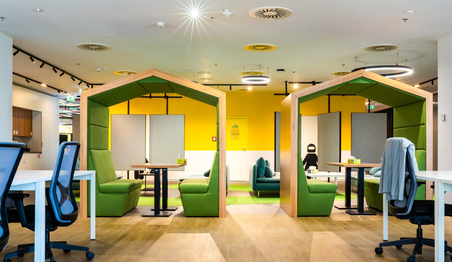 Noul sediu Glovo, situat în clădirea U Center 2 din București și desfășurat pe o suprafață de peste 2.000 mp, reflectă o intervenție atent calibrată la noile realități ale muncii post-pandemice. Obiectivul principal al proiectului a fost acela de a crea un spațiu modern, funcțional și flexibil, care să reflecte valorile brandului și să răspundă nevoilor unei echipe dinamice, aflate într-un proces continuu de adaptare.