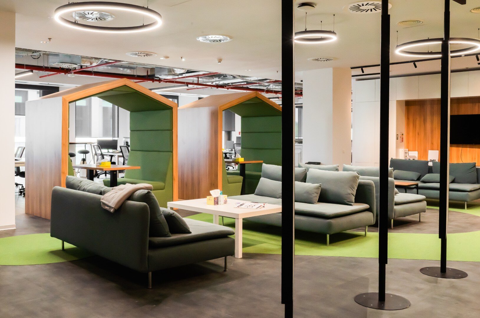 Una dintre provocările esențiale ale proiectului a fost regândirea funcției biroului în contextul adoptării pe scară largă a muncii hibride, fenomen accelerat după pandemia COVID-19. Proiectul răspunde acestor noi realități printr-o reducere a numărului de posturi fixe, în favoarea unor spații deschise, modulare, care încurajează colaborarea. Accentul s-a mutat către o estetică mai caldă, mai primitoare, cu o componentă socială mult mai pronunțată, adaptată nevoilor actuale de interacțiune, comunicare și apartenență la echipă.