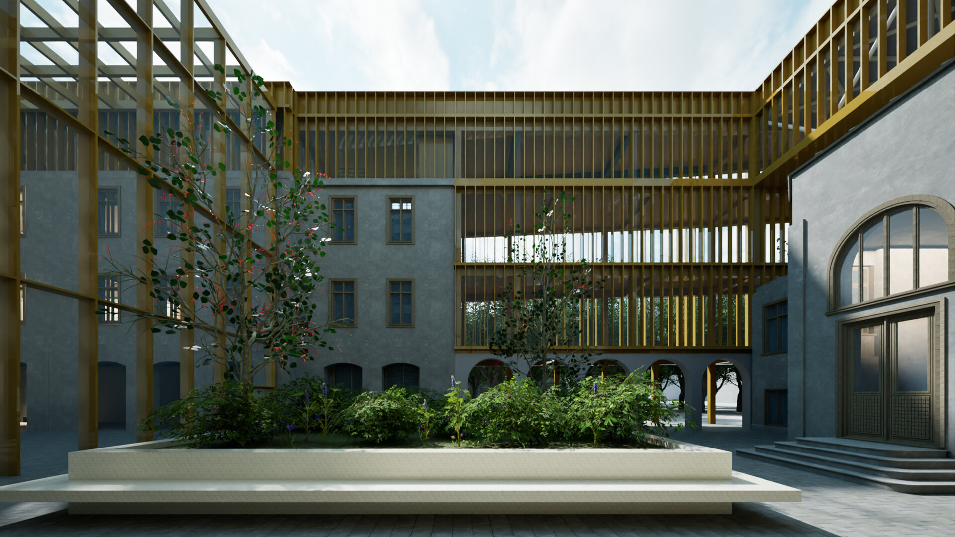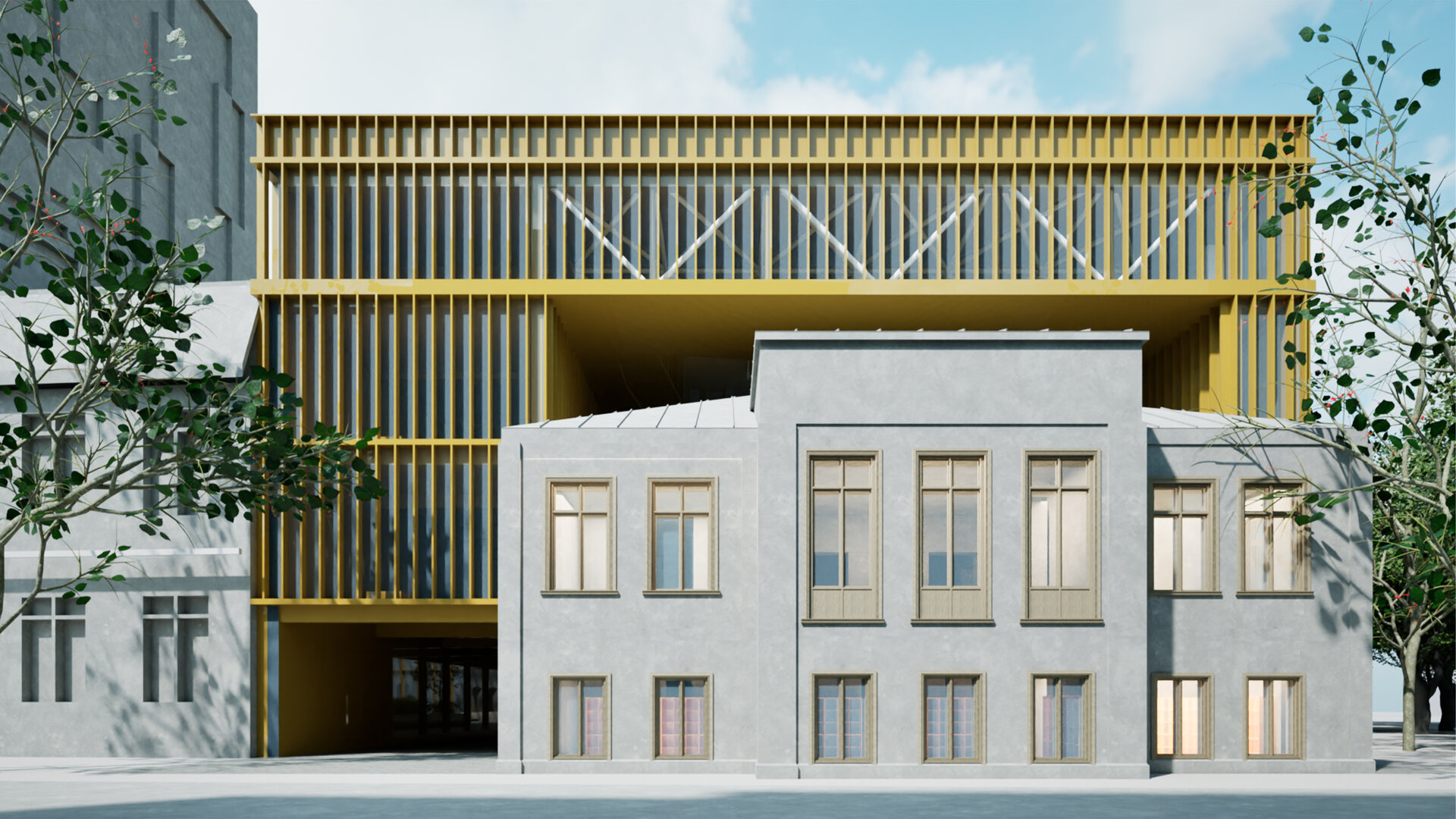 Intervenția propusă adoptă o abordare integratoare, ce valorifică patrimoniul construit existent prin asocierea sa cu o extensie arhitecturală expresivă, adaptată cerințelor educaționale și culturale actuale. Spațiul intermediar, generat între cele două registre arhitecturale, devine un element de legătură, prin care se accentuează dialogul dintre vechi și nou, dintre memorie și inovație.