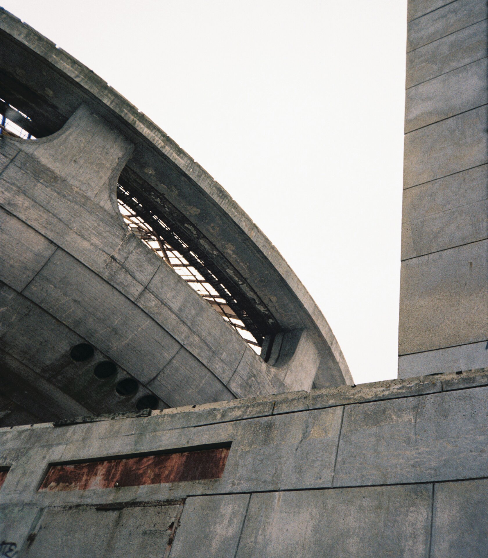 Fotografia provine și ea din această curiozitate și arată ansamblul altfel, într-o ipostază opusă intenției arhitecților, fără pretenția de a fi o descoperire importantă sau un apel la nostalgie: privită de aproape, geometria atent compusă își pierde echilibrul și ierarhia, betoanele se răstoarnă în cădere liberă. Rugina și depunerile ultimelor trei decenii deja i-au erodat permanența, de parcă abandonul s-ar fi întâmplat cu mult timp înainte.