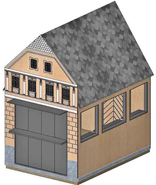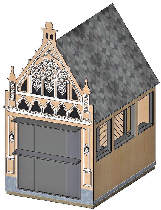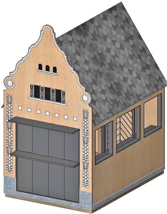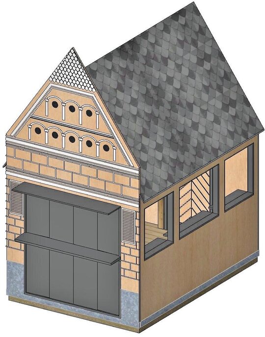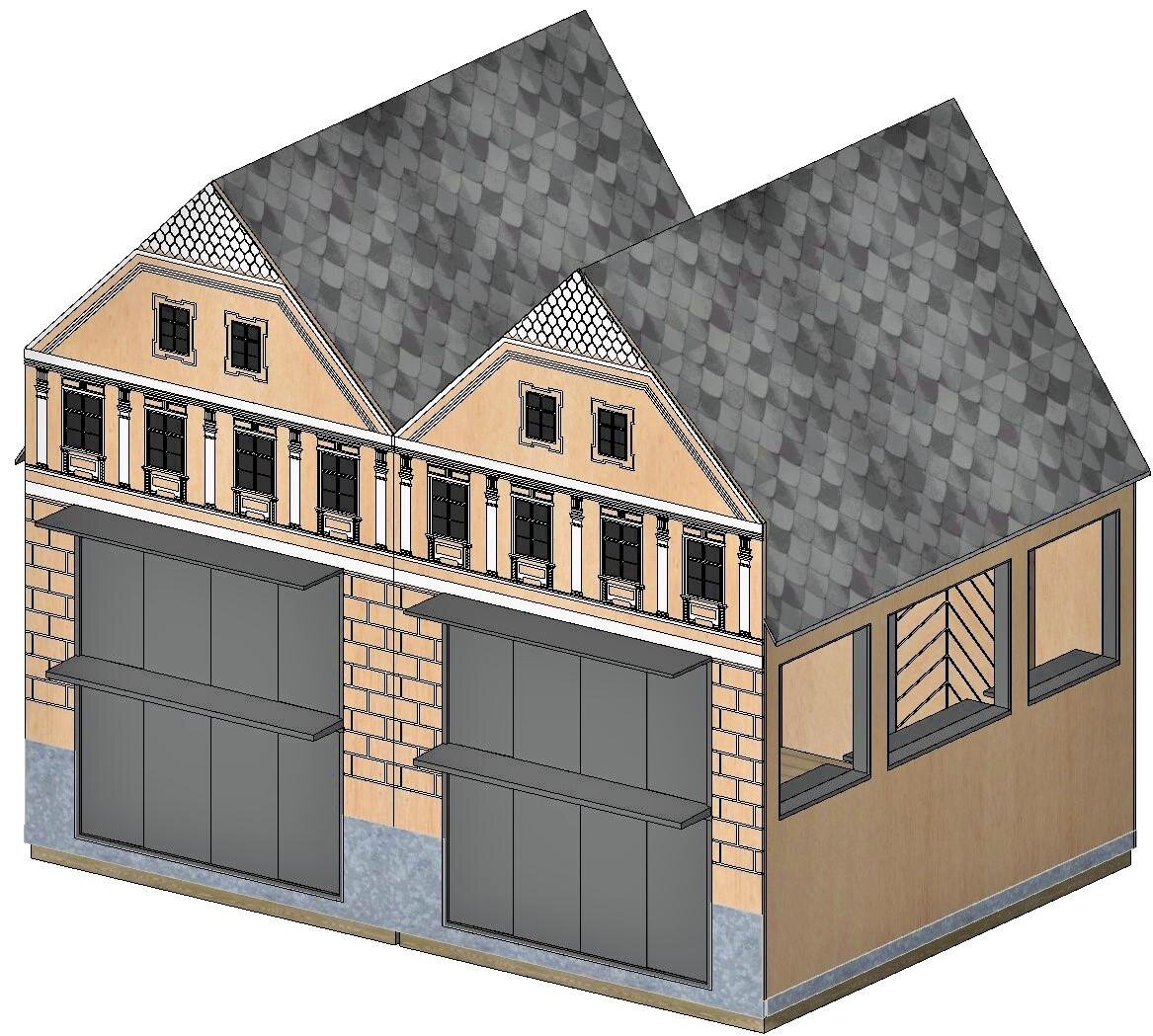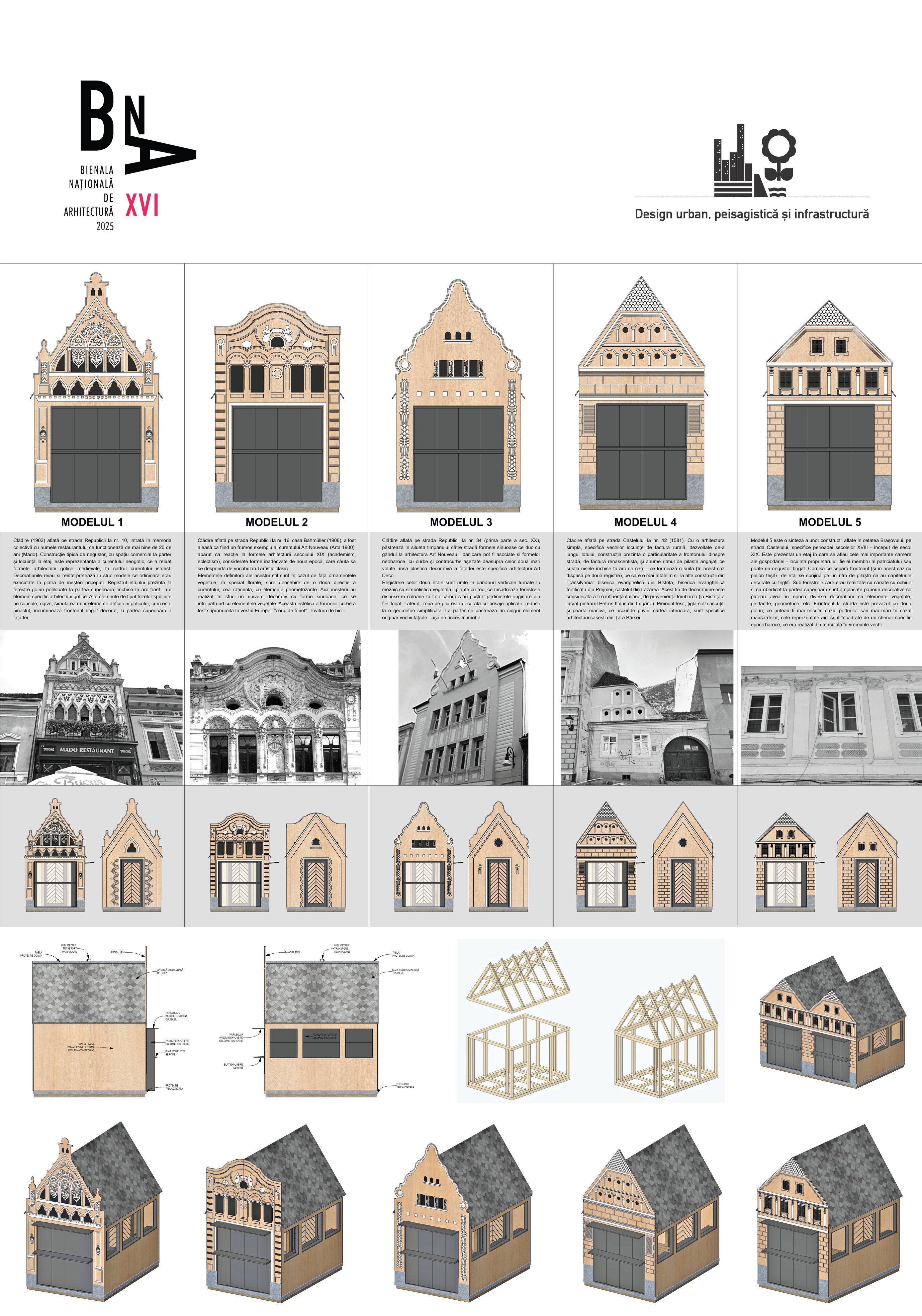 Astfel, au fost analizate fațade ale unor clădiri din centrul istoric, pe care privitorul le va putea identifica ușor și ale căror elemente au fost preluate în liniile de compoziție ale modelelor de decupaje propuse în placaj precum și în elemente decorative tipărite/conturate pe suprafețele exterioare ale plăcilor ce formează frontonul căsuțelor.