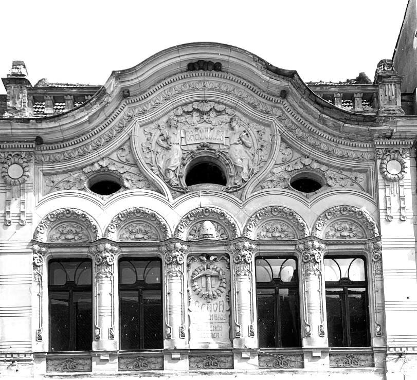 MODEL 2 - Clădire aflată pe strada Republicii la nr. 16, casa Bahmüller (1906), a fost aleasă ca fiind un frumos exemplu al curentului Art Nouveau (Arta 1900), apărut ca reacție la formele arhitecturii secolului XIX (academism, eclectism), considerate forme inadecvate de noua epocă, care căuta să se desprindă de vocabularul artistic clasic.