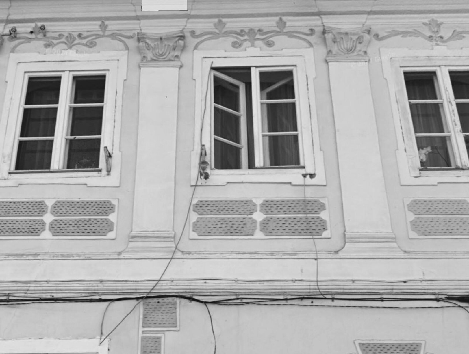 Registrele celor două etaje sunt unite în bandouri verticale turnate în mozaic cu simbolistică vegetală - plante cu rod, ce încadrează ferestrele dispuse în coloane în fața cărora s-au păstrat jardinierele originare din fier forjat. Lateral, zona de plin este decorată cu bosaje aplicate, reduse la o geometrie simplificată. La parter se păstrează un singur element originar vechii fațade - ușa de acces în imobil.