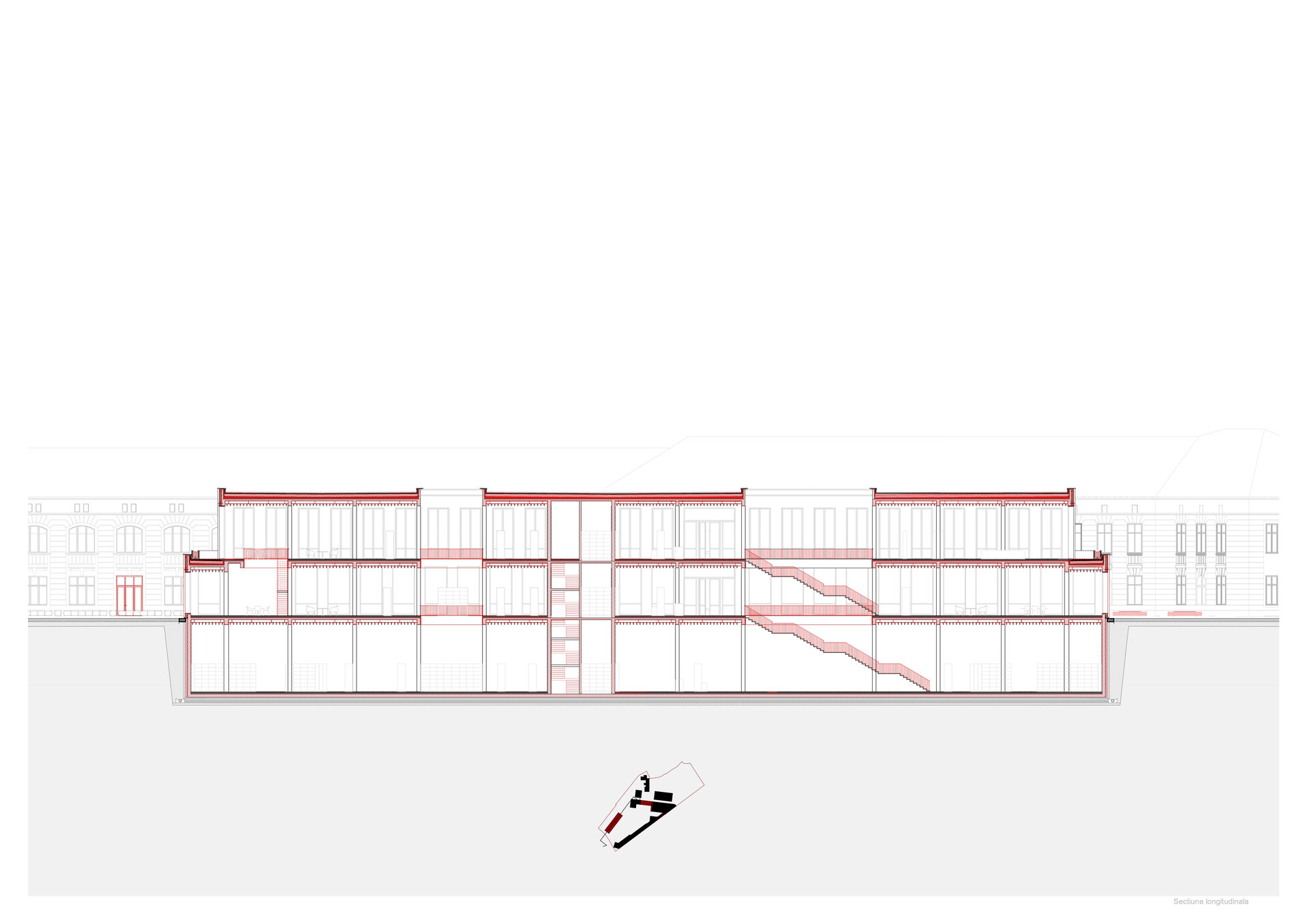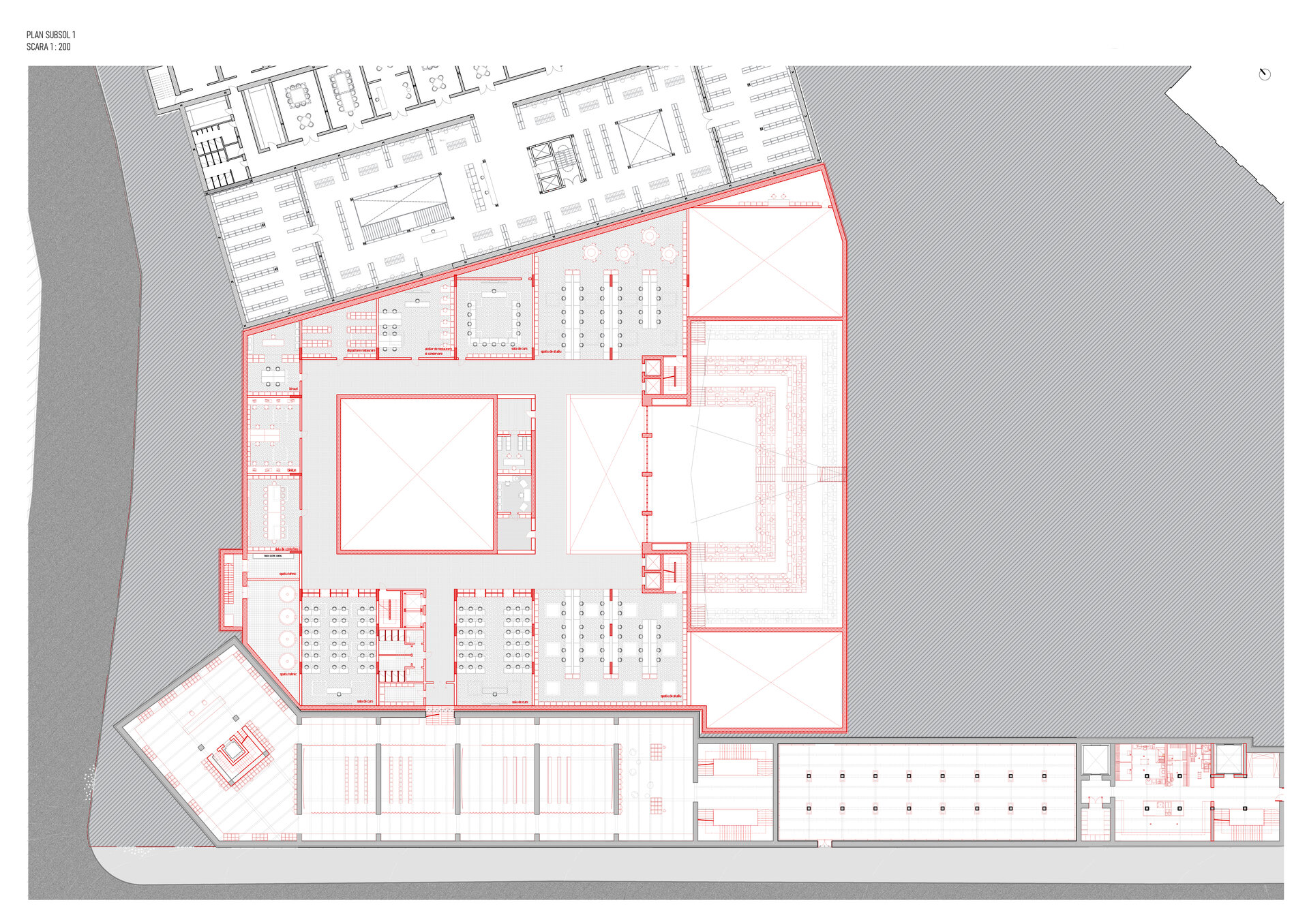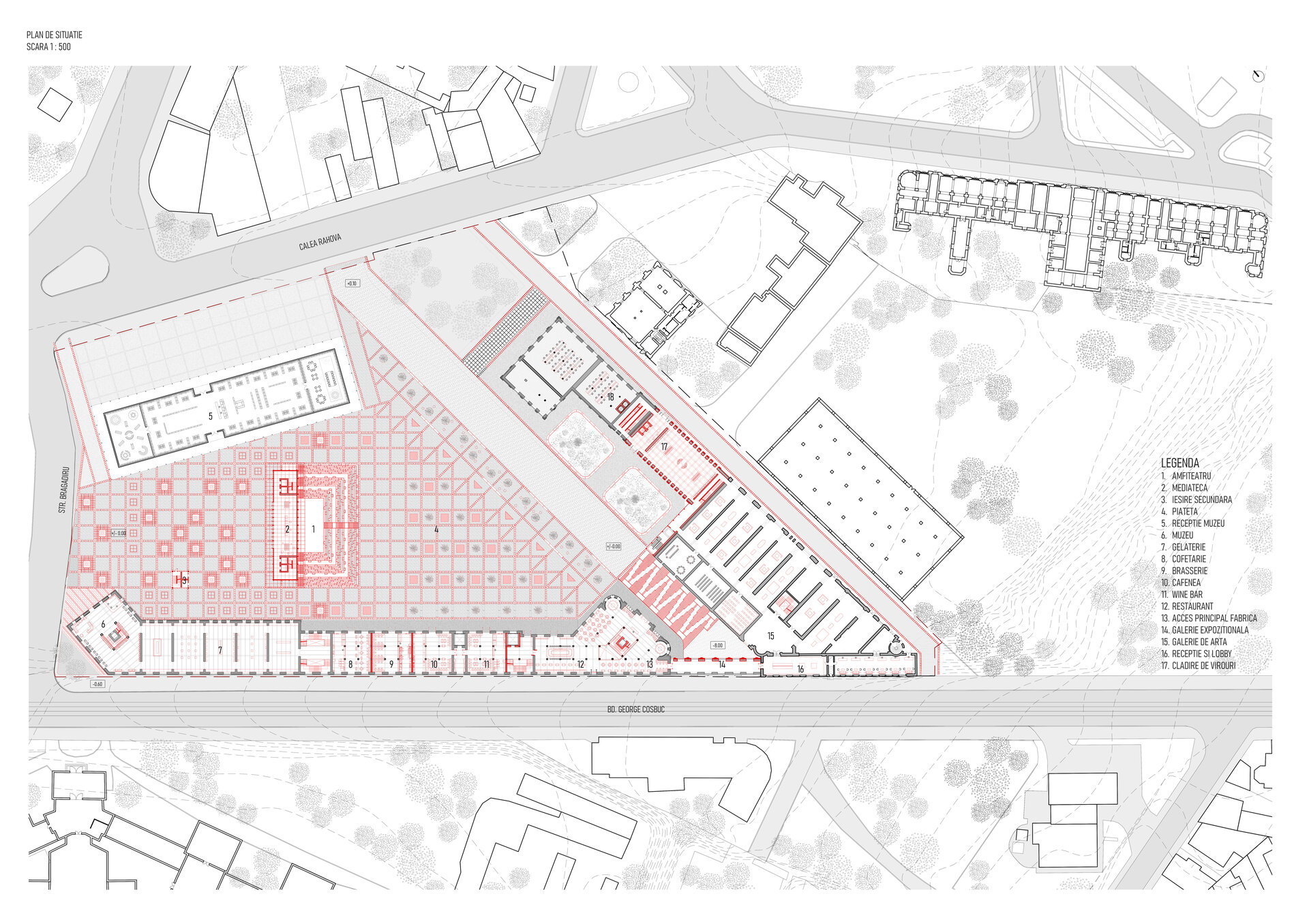 Soluția propusă urmărește trei direcții majore: refacerea topografiei și a accesibilității, diversificarea funcțiunilor și interconectivitatea clădirilor. Terenul este readus la cota inițială prin completarea zonelor excavate, piațeta centrală devine din nou spațiu public activ, iar fosta stradă Bragadiru este redeschisă circulației rutiere și pietonale, restabilind legătura dintre cele două bulevarde. În interiorul ansamblului, toate clădirile, atât cele vechi reabilitate, cât și cele noi, sunt conectate prin pasaje, circulații suspendate și spații comune, oferind un parcurs fluid și coerent.