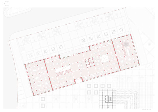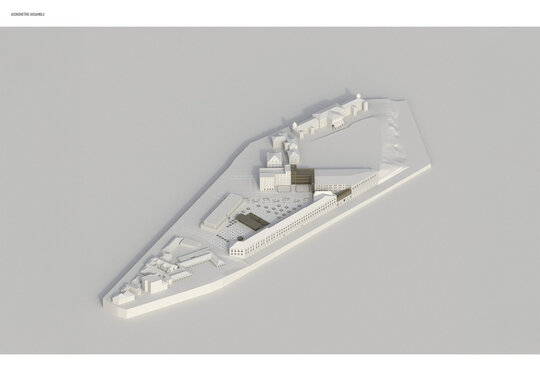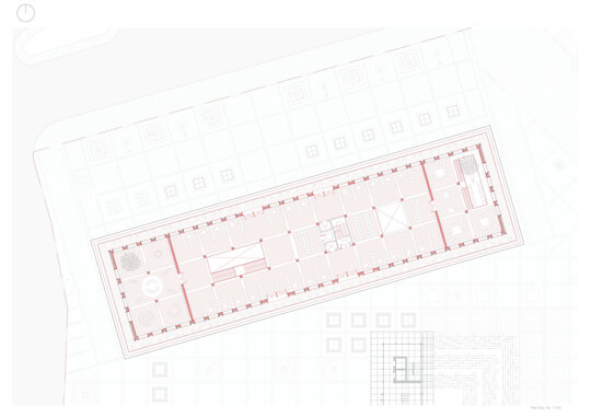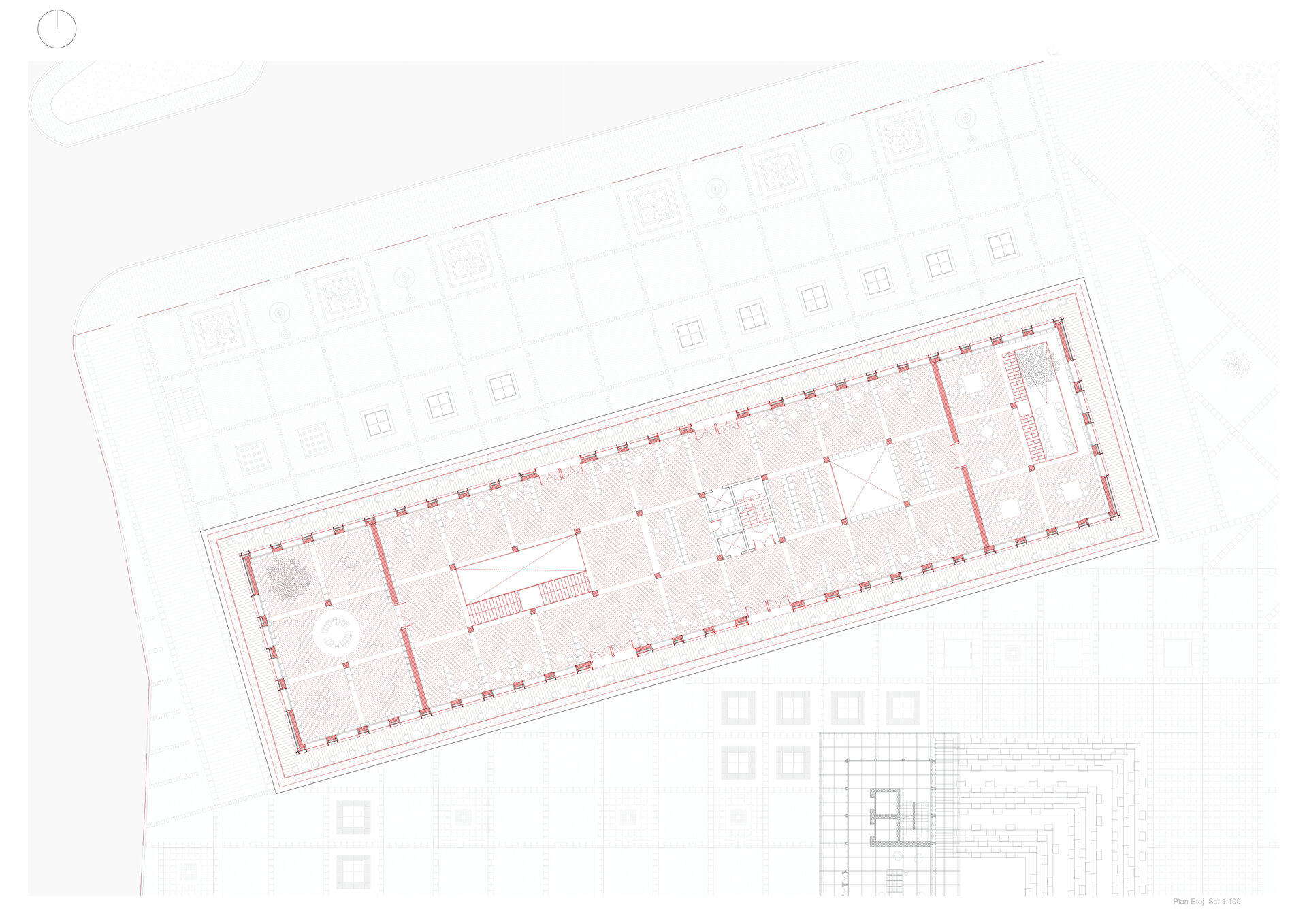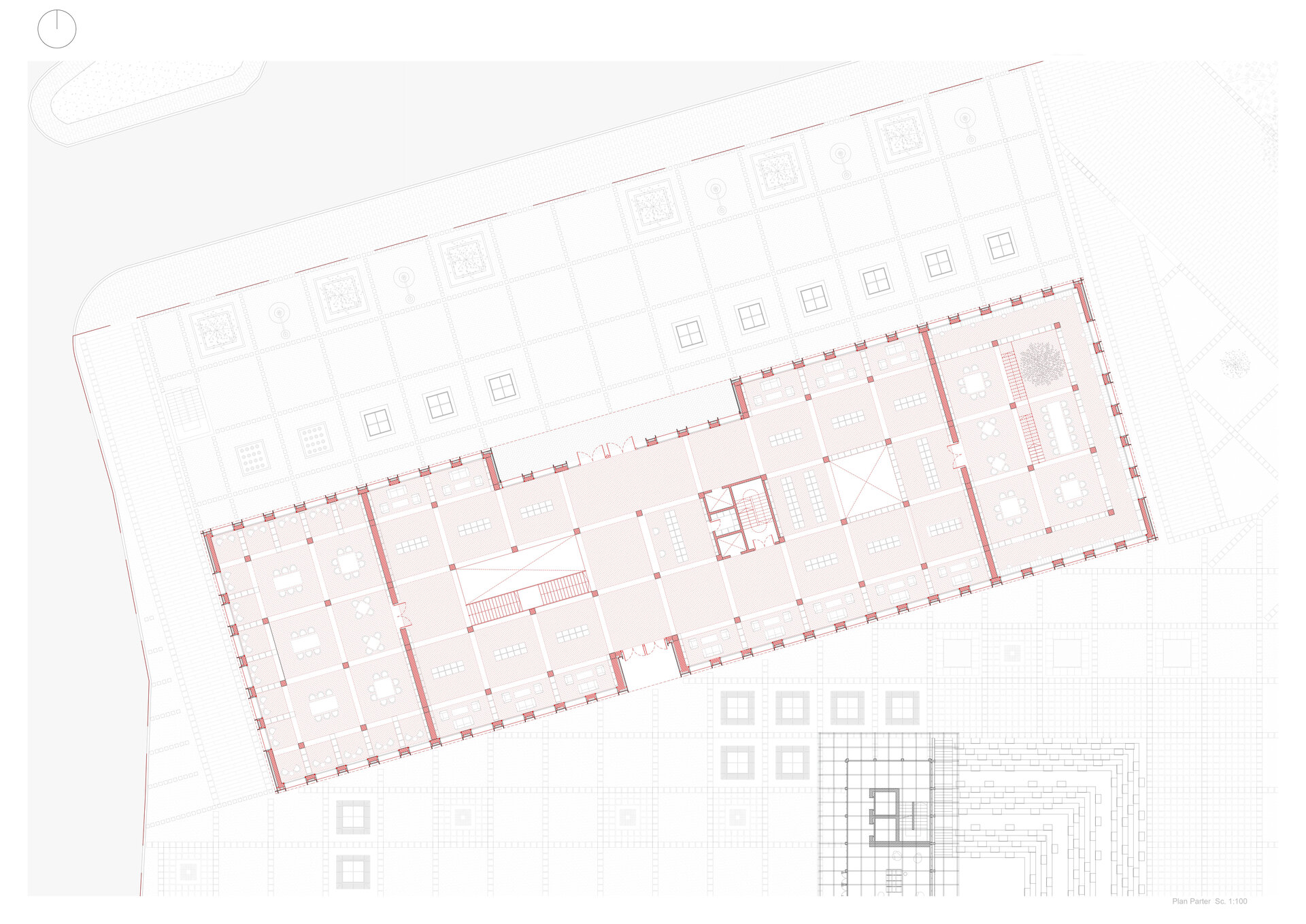 Soluția propusă urmărește trei direcții majore: refacerea topografiei și a accesibilității, diversificarea funcțiunilor și interconectivitatea clădirilor. Terenul este readus la cota inițială prin completarea zonelor excavate, piațeta centrală devine din nou spațiu public activ, iar fosta stradă Bragadiru este redeschisă circulației rutiere și pietonale, restabilind legătura dintre cele două bulevarde. În interiorul ansamblului, toate clădirile, atât cele vechi reabilitate, cât și cele noi, sunt conectate prin pasaje, circulații suspendate și spații comune, oferind un parcurs fluid și coerent.