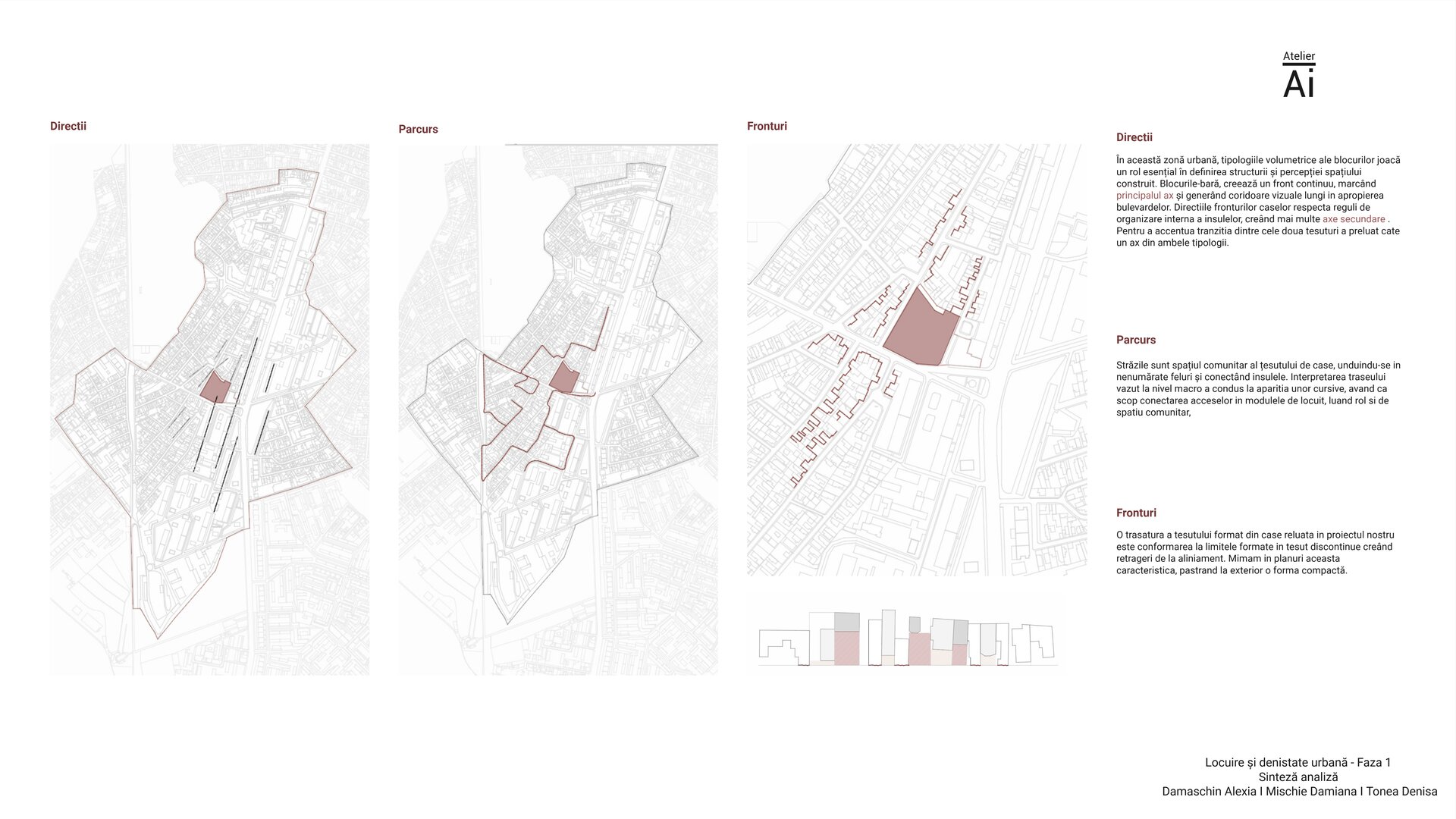 Locația aleasă pentru proiect se află într-o zonă urbană marcată de diversitate și de tensiuni vizibile între tipologii. Pe de o parte, există case individuale, aliniate pe străzi înguste, care păstrează încă memoria orașului tradițional. Acestea au scara umană, sunt permeabile, calde și conectate direct la viața comunității. Pe de altă parte, există blocuri-bară ridicate în deceniile trecute, cu volume mari și fronturi continue, care impun o ordine rigidă și marchează bulevardele principale.