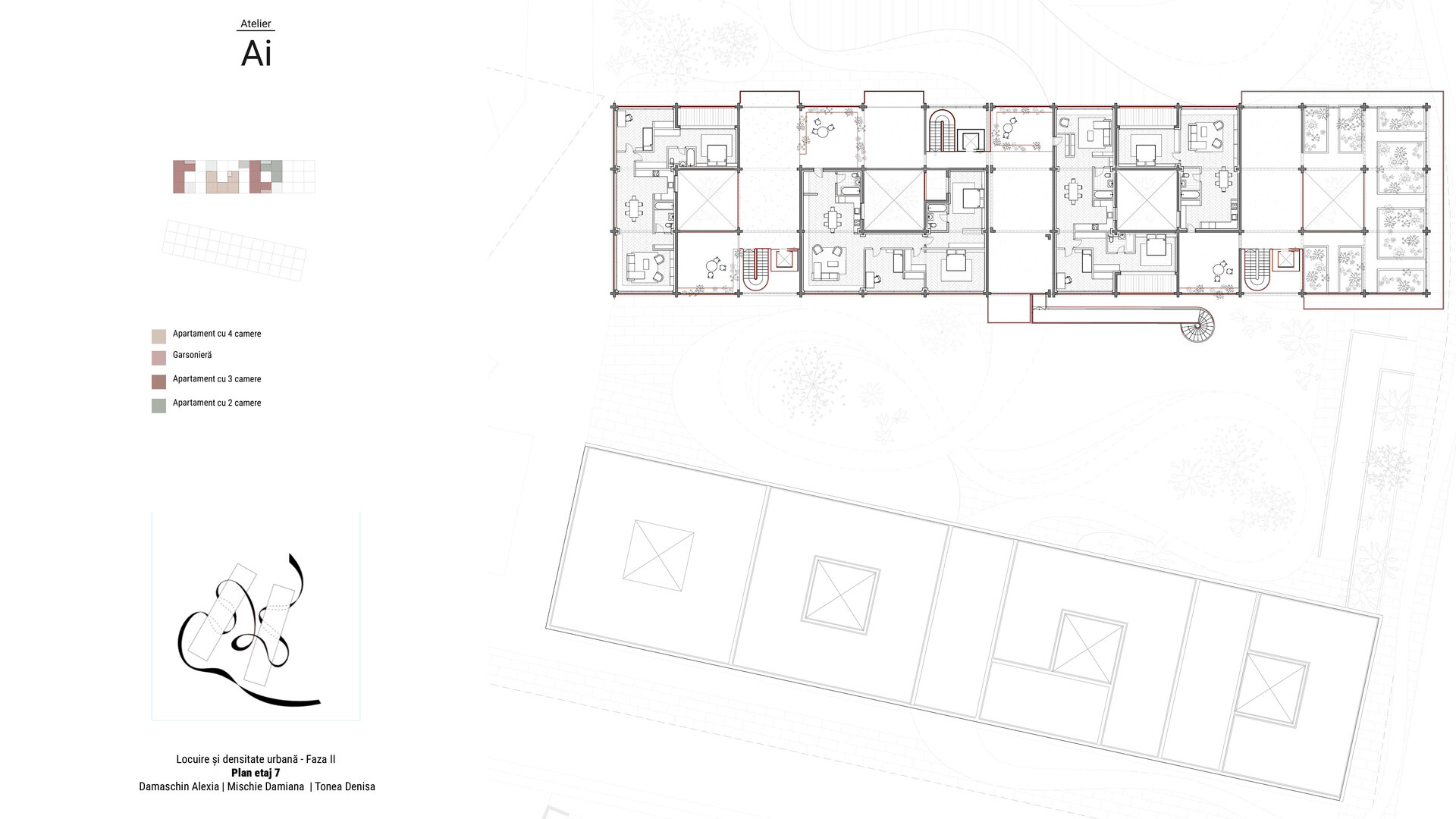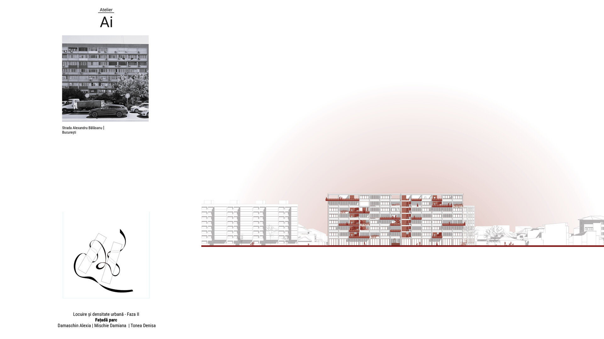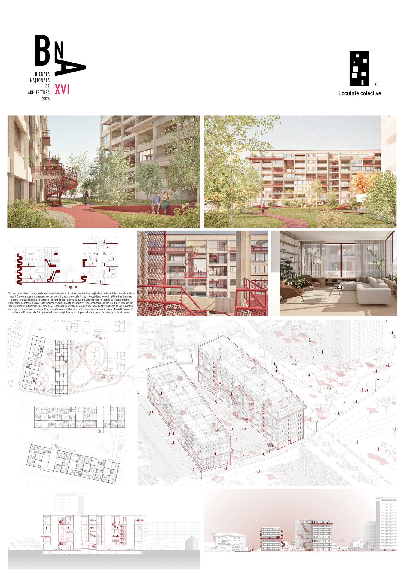 Tranziția dintre spațiile publice, comunitare și private este una dintre temele fundamentale ale proiectului. În timp ce parcul public este deschis și permeabil, panglica devine spațiul semi-public, locul unde locatarii se întâlnesc, se cunosc și construiesc relații. Apartamentele, cu terasele lor deschise și cu jardinierele care le delimitează, reprezintă zona intimă, protejată, dar nu complet izolată. Această ierarhie subtilă permite o gradare a experienței spațiale: de la agitația bulevardului, la liniștea curții interioare, la intimitatea casei. Prin acest proiect, am dorit să demonstrăm că arhitectura poate fi mai mult decât un exercițiu tehnic. Ea poate fi un instrument de reconectare, o punte între oameni și între lumi aparent incompatibile. Panglica noastră nu este doar o soluție funcțională, ci o declarație despre modul în care vrem să trăim împreună. Este o invitație la redescoperirea bucuriei de a locui într-o comunitate, la crearea unor contexte pentru serendipitate, la construirea unui oraș care să nu fie doar eficient, ci și plin de viață. În final, credem că viitorul locuirii colective stă în astfel de experimente, care îndrăznesc să reinventeze tipologiile existente. Orașele nu trebuie să fie doar conglomerate de clădiri, ci spații vii, care respiră, care cresc organic, asemenea comunităților pe care le găzduiesc. Panglica este doar începutul unui dialog mai amplu, un prim pas către un mod de a construi care să pună oamenii și relațiile dintre ei în centrul preocupărilor arhitecturale. Este un vis despre un oraș mai bun, dar și o propunere concretă, gata să devină realitate.